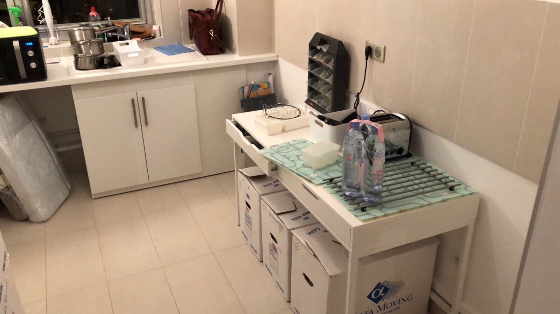 I Frankrike tar man ofta med sig sitt kök när man flyttar, så även i vår lägenhet. Så en del högst temporära möbler får åka in där sålänge👌🏻