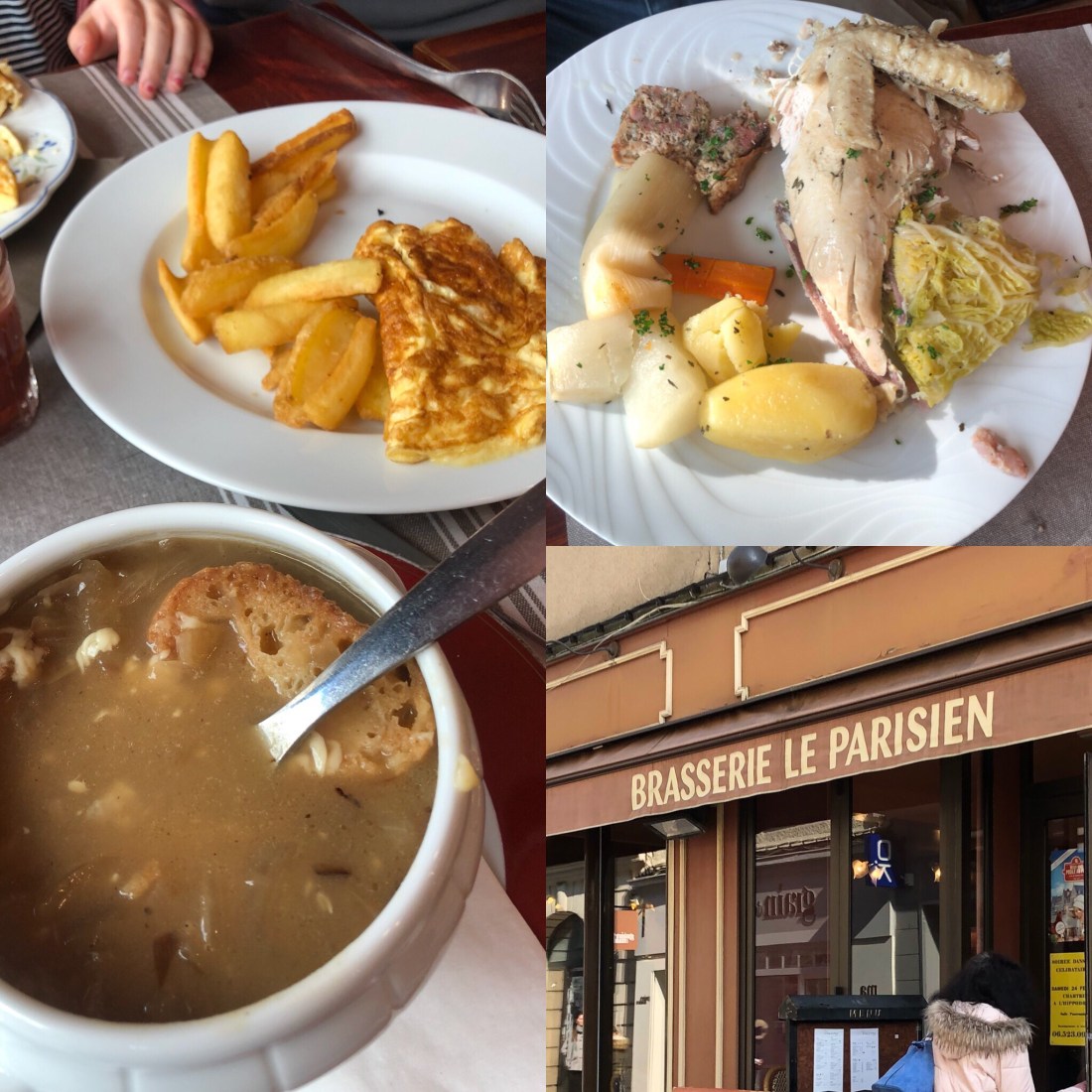Vi satsade istället (som oftast) på att upptäcka genom att äta och strosa runt. Lunchen intogs på ett riktigt klassiskt franskt brasserie. Maten gör sig inte riktigt på bild, men måste visa upp ändå. Omelett, löksoppa och långkokt kyckling. Enkelt men sååå gott och vällagat😋