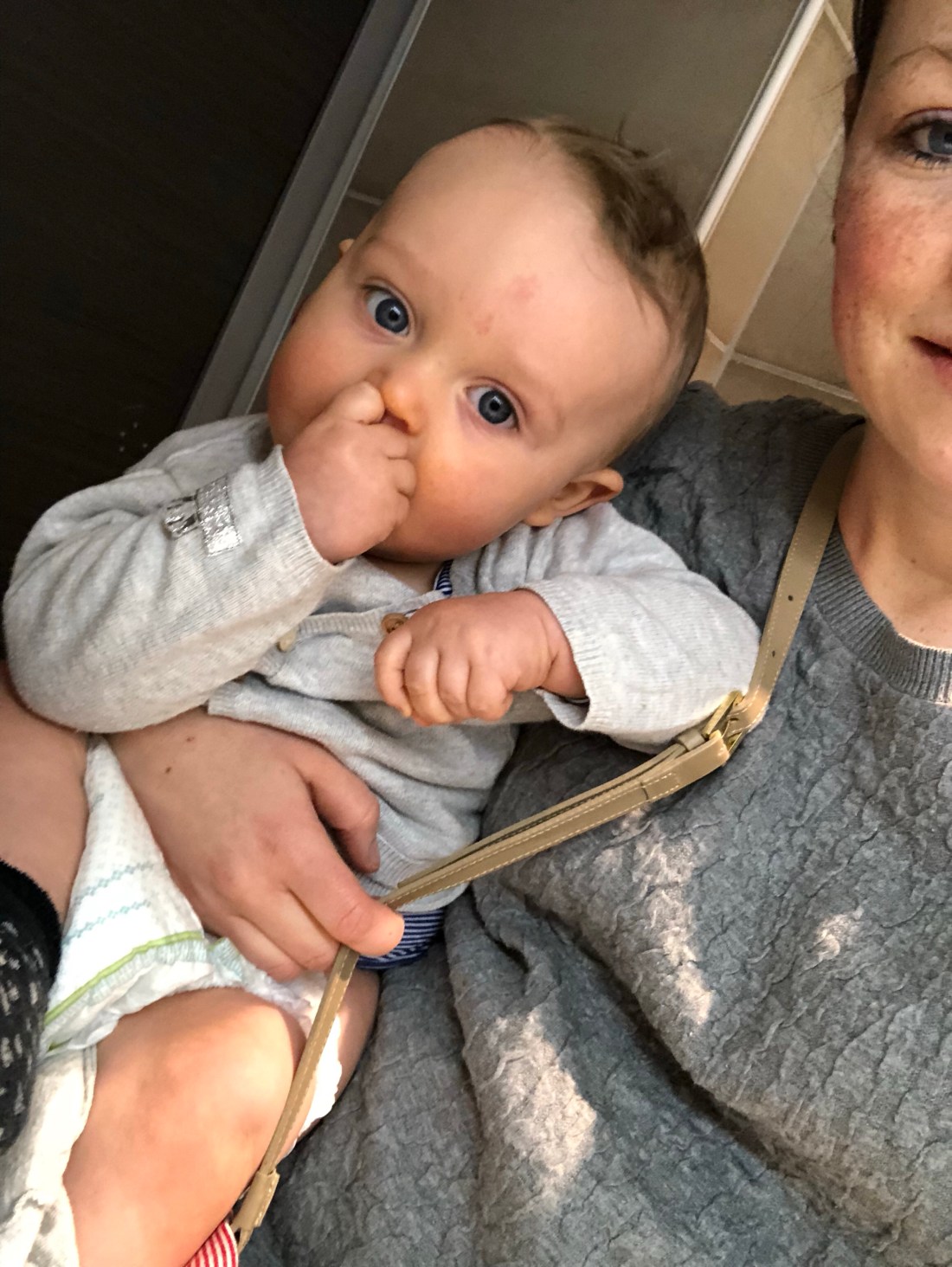 Den här plutten får också vara med på bild. Vi börjar bli riktigt duktiga på att byta blöja utan skötbord nu. Har utvecklat min egen teknik som bara kräver att det finns någonstans att sätta upp foten så man kan ha låret som underlag. Funkar fint sålänge det är en snäll blöja🤣