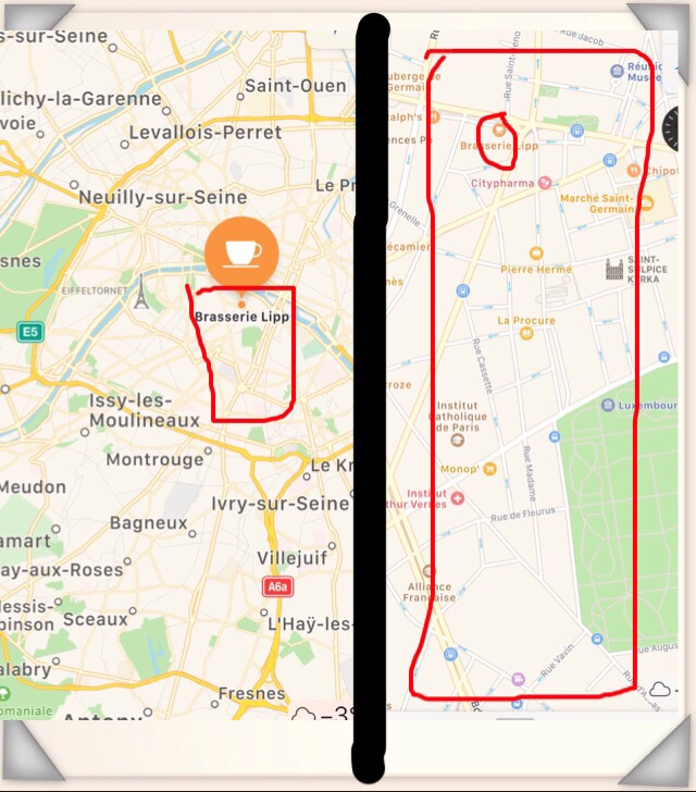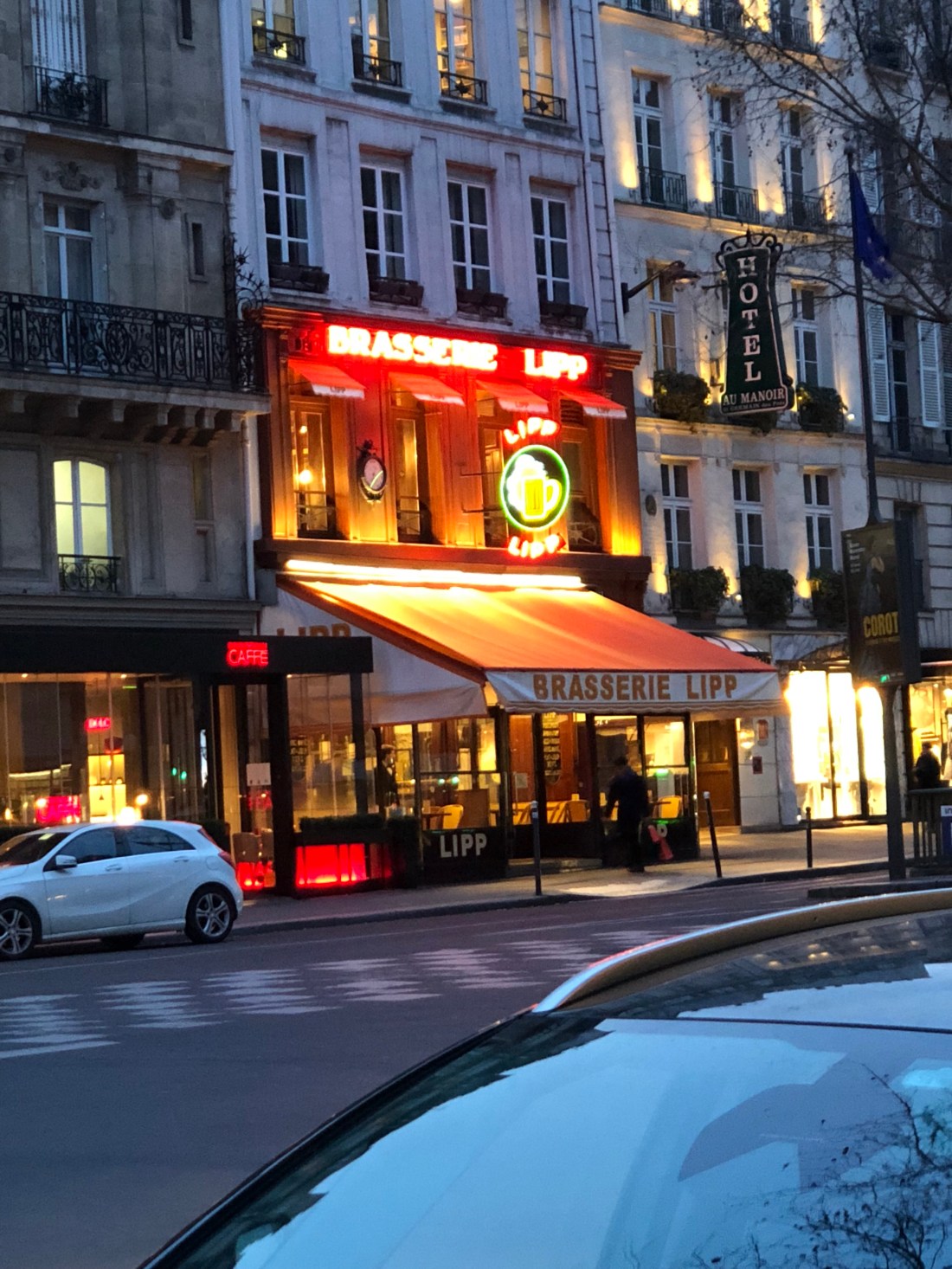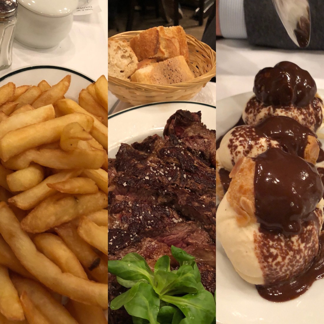 Maten fångade jag iaf på bild och den var👌🏻 Vi gick till en av Paris riktigt klassiska brasserier – Lipp, och åt en riktigt klassisk entrecote med pommes, glassfyllda och chokladdränkta profiteroles till efterrätt😋