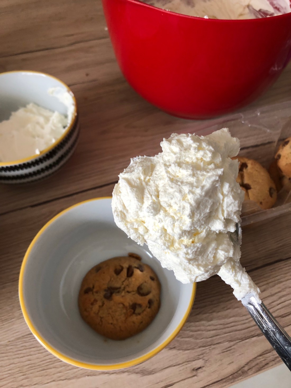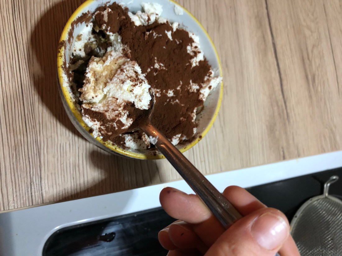Idag kör vi ocksĂ„ lite franskt med efterrĂ€tt sĂ„hĂ€r en mĂ„ndagskvĂ€ll. Inget annat att göra nĂ€r det fanns en mascarpone i kylen som höll pĂ„ att gĂ„ ut i datumđŸ€·đŸ»â€â™€ïž har sett tips nĂ„gonstans (minns inte var) pĂ„ tiramisu med chocolate chip istĂ€llet för savoiardikex sĂ„ jag freestylade lite och det blev toppen😋 en liten skvĂ€tt calvados i mascarponekrĂ€men i brist pĂ„ amarettođŸ‘ŒđŸ»