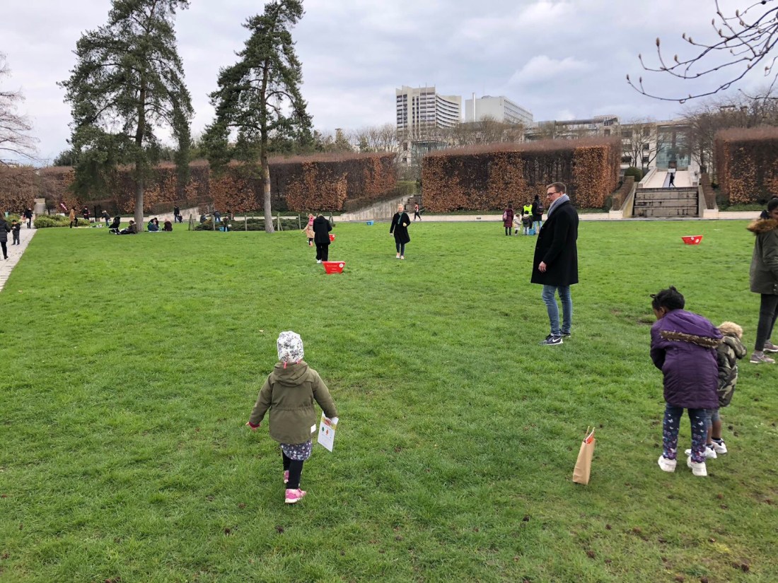 Lite senare start idag så det blev lunch direkt när vi åkt färdigt med metron. Idag linje 10 in till Javel André Citroën. André Citroën är också namnet på parken där vi spenderat större delen av dagen. Där har det varit superjippo för barn med äggjakt i fokus. Kan verkligen varmt rekommenderas om man är här som en barnfamilj över påsken. Man köper biljetter (helst i förväg) för att delta i olika aktiviteter, som är uppdelat i ålderskategorier. För barn 3-6 var det äggjakt (man skulle hitta ägg i 3 olika färger som sedan byttes mot en gottepåse), ansiktsmålning och en blomsteratelje där man fick måla sin egen kruka och sedan välja en blomma att plantera.
