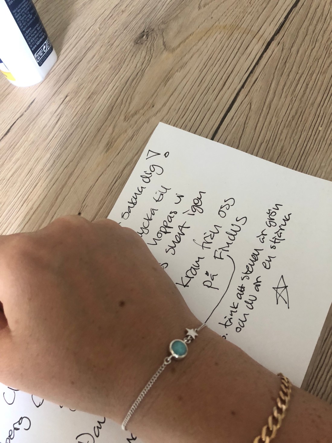 Igår fick jag också ett finfint paket från Sverige och de gamla kollegorna på Findus. Jag har ju varit borta ett drygt år redan nu när jag faktiskt avslutar min anställning. Så då blir man extra glad att bli tänkt på😊 ett fint armband med tillhörande kommentar ”tänk dig att stenen är grön och att du är en stjärna” 😂 kommer alltid sitta på handleden tillsammans med guldkedjan nu👌🏻