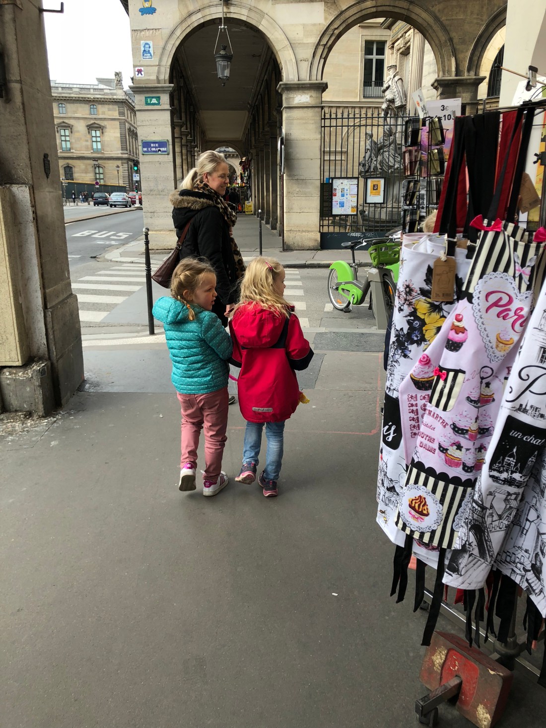 Lördagen spenderades med att långsamt ta oss till Louvren, via en mysig, nästan gågata, Rue Montorgueil. Här hittade vi bl a en god, klassiskt fransk lunch och lekte ”Hur många barn krävs för att hålla ordning på Sam?” svaret: minst 3😅