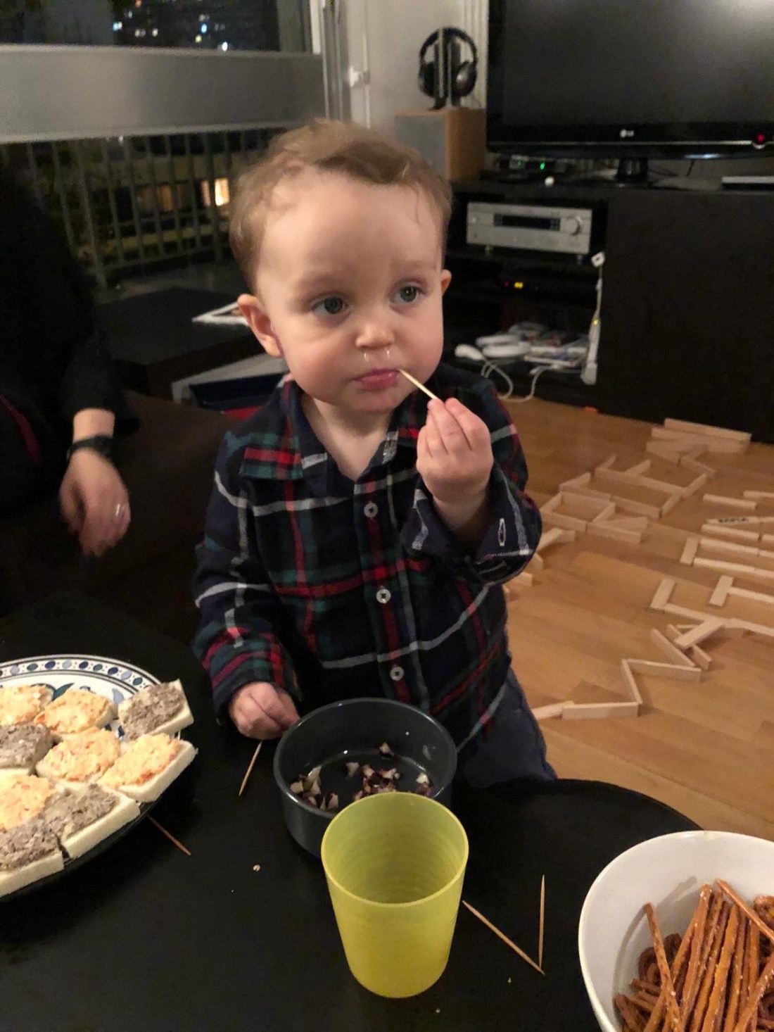 I lördags kväll var det iaf lite action när vi var bortbjudna på middag. Även om vi faktiskt då inte ens lämnade huset🤣 Middagen var hos en familj som bor på våningen över oss. Vi har varit där tidigare och de har även varit här. De har barn i samma ålder och deras äldsta går på Lollos skola. Marceau har huuuur mycket leksaker som helst och alla barnen var uppe till midnatt, när vi gick hem😱 Eller ja, förutom Sam. Vi nattade honom i vanlig tid hemma och tog med babyvakten upp. Funkade super👏🏻 vilket var ett litet test inför nyår då vi är bjudna på fest här också.