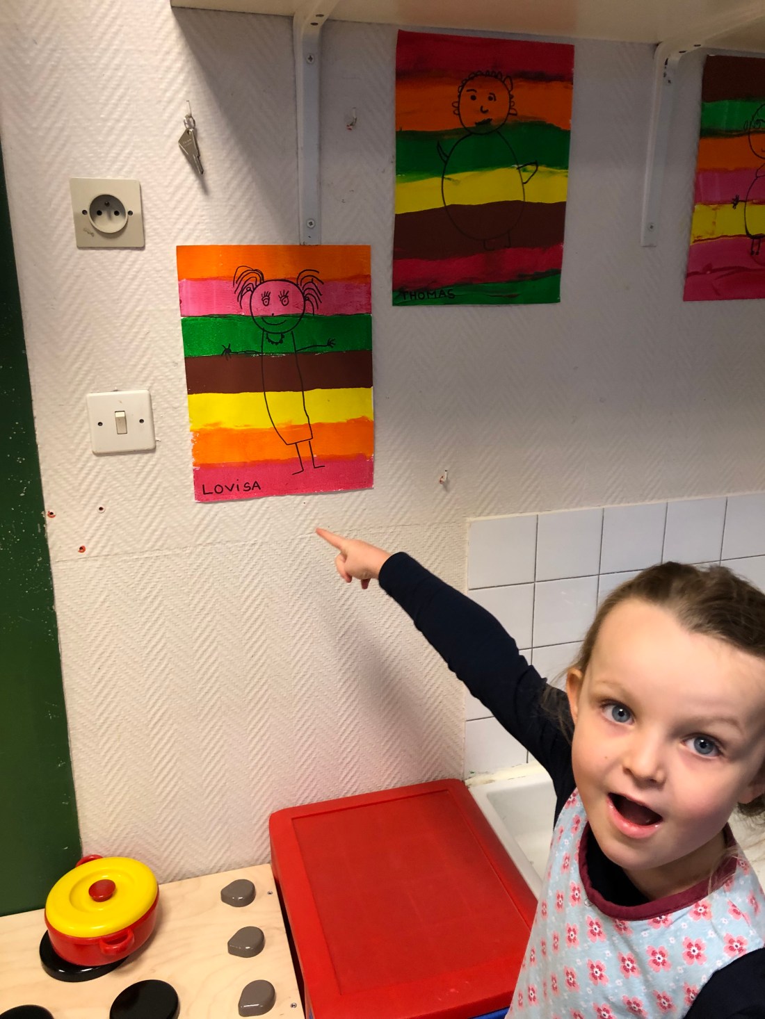 Båda barnen stolts över sina alster idag: Lollos regnbågsportätt och Sam över sin inbjudan till crechens julfest. Sam har satt dit guldplupparna✌🏻