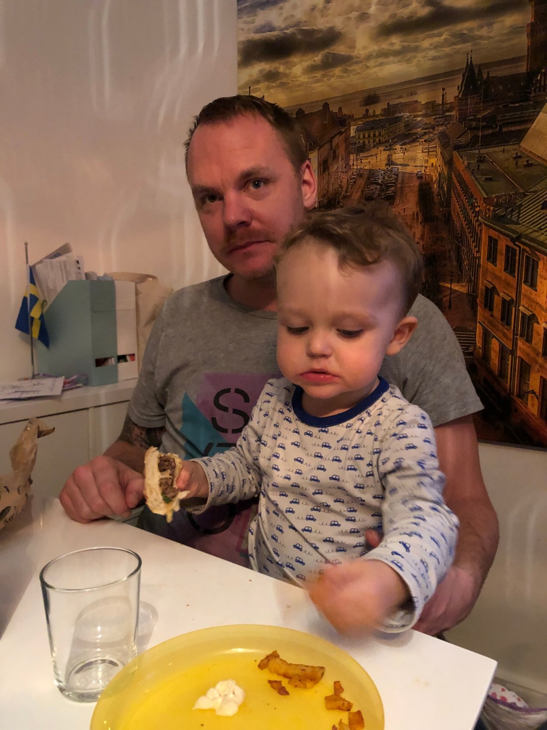 Så ikväll var det Niclas knä som gällde igen😊 Där märks det tydligt att Sam börjar bli stor, kommer ihåg och visar det tydligt.