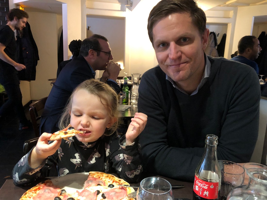 På årets sista lediga onsdag passade jag och Lollo på att hälsa på Tomas på jobbet för en lunch. Eller som Lollo uttrycker det ”hälsa på pappas jobbfamilj”. Vi fick äran att följa med till Tomas stammisrestaurang som serverar suveräna pizzor👌🏻 hit brukar han gå när han vill ha lite lugn och ro från alla fransmän på jobbet😂