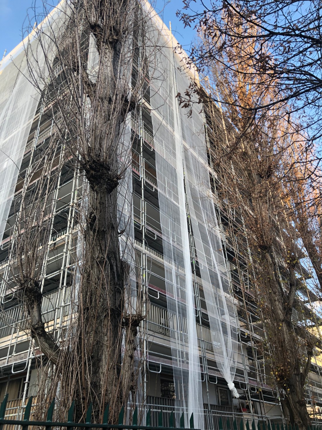 Fasaden och balkongerna ska renoveras och det verkar som det kommer ta sin tid. Bara att sätta upp ställningarna har tagit typ 6 veckor. Kommer bli fint och rätt tid inte kunna använda balkongerna ju. Men superkonstig känsla när det plötsligt går förbi en gubbe utanför fönstret (på 5:e vån) 😱