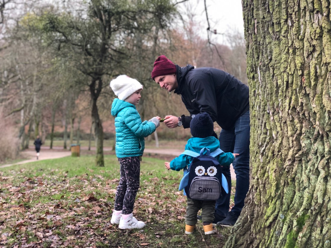 För att väga upp det faktum att vi bor i en stadsmiljö, i en lägenhet och att barnen knappt är ute på dagarna, så känner man ofta ett stort behov av att få luft och att verkligen vara ute på helgerna. De helgerna inget annat är planerat går det alldeles utmärkt och med bilen är det egentligen bara att bestämma hur långt vi vill åka och så börja köra. Vi har massor av stora skogsområden inom 20 min med bil. Sam är mer av en skogsmulle än Lollo, men med picknick och en påhittig pappa så blir det ändå roligt för alla.
