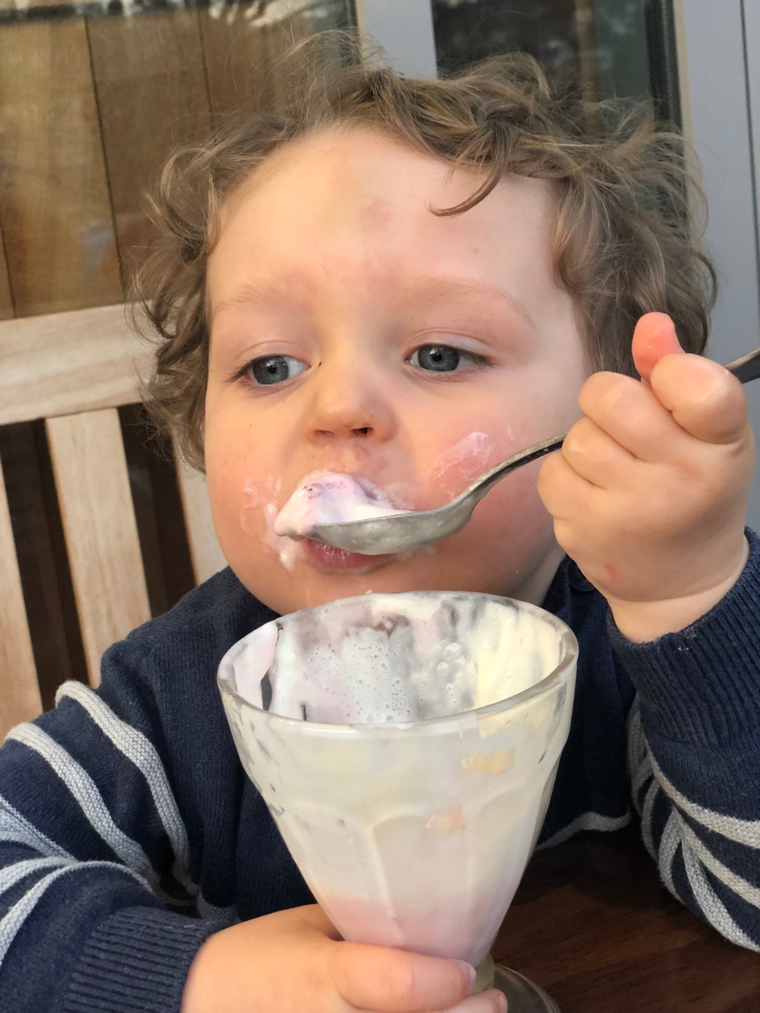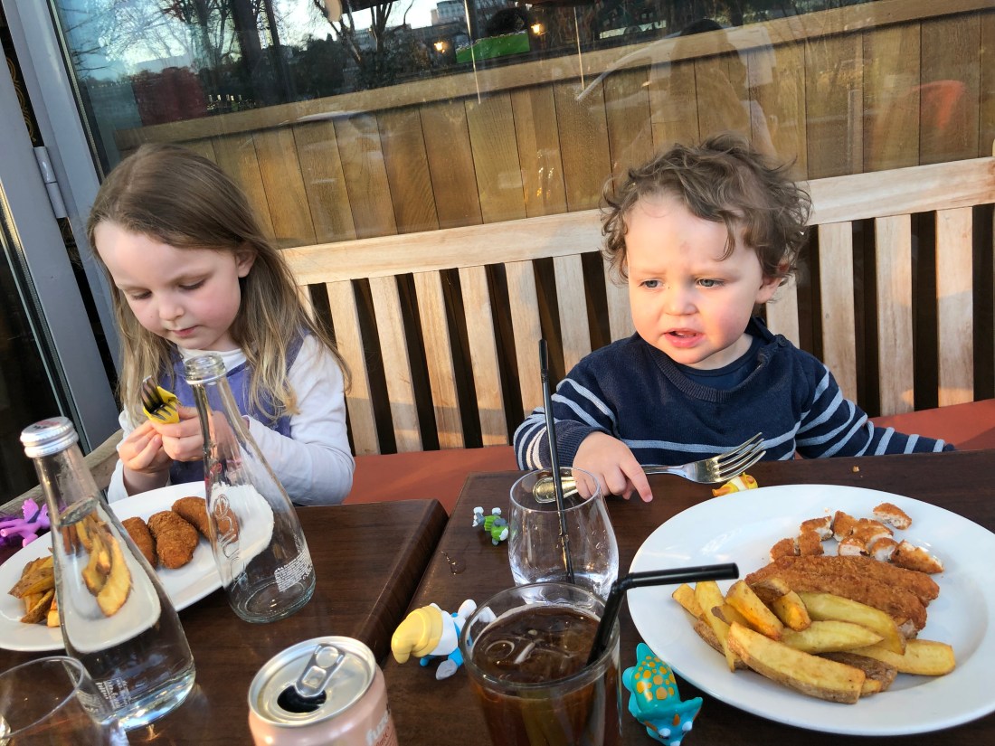 På kvällen gick vi ner till vårt ”Norra hamnen” för en tidig middag i kvällssolen. Det är fortfarande mycket spring i benen, men vilken skillnad mot bara några månader sedan på Sam. Nu kan vi i stort sett sitta ner hela middagen🙌🏻 Och visst hjäper det att det serveras en gigantisk glass till barnmenyn🤣