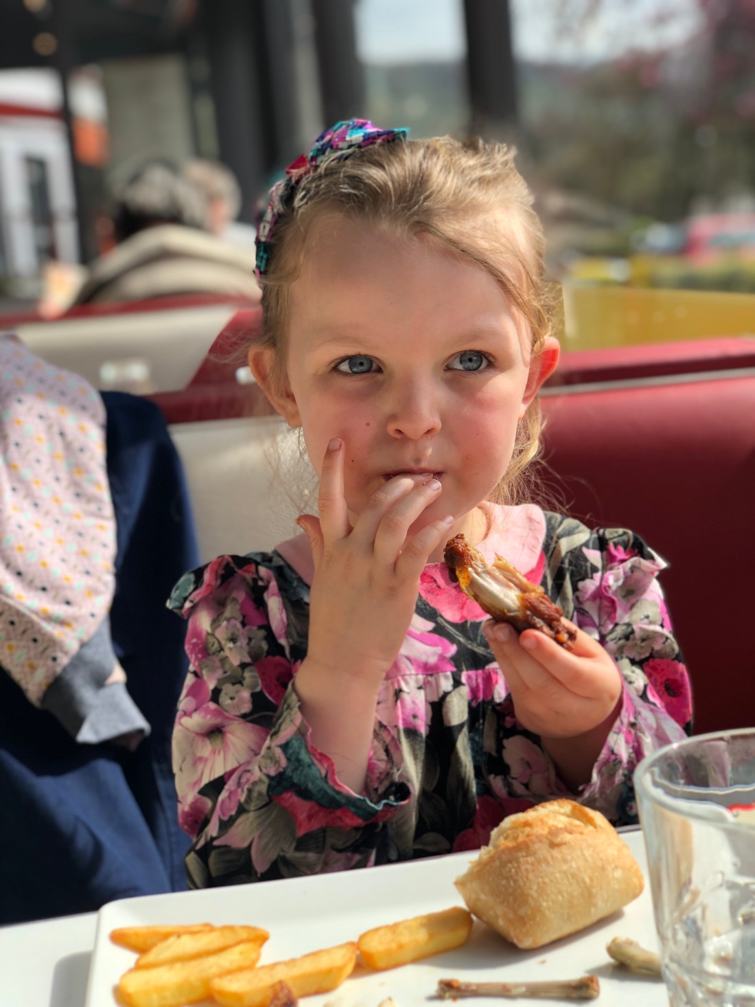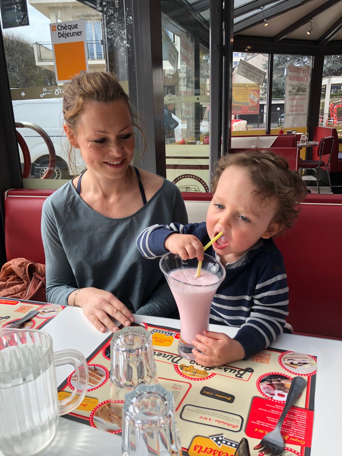 På vägen dit stannade vi till i grannbyn Vernon för lunch. Det blev totalt ofranskt med en amerikansk diner. Men tummen upp för kycklingvingar och milkshake.