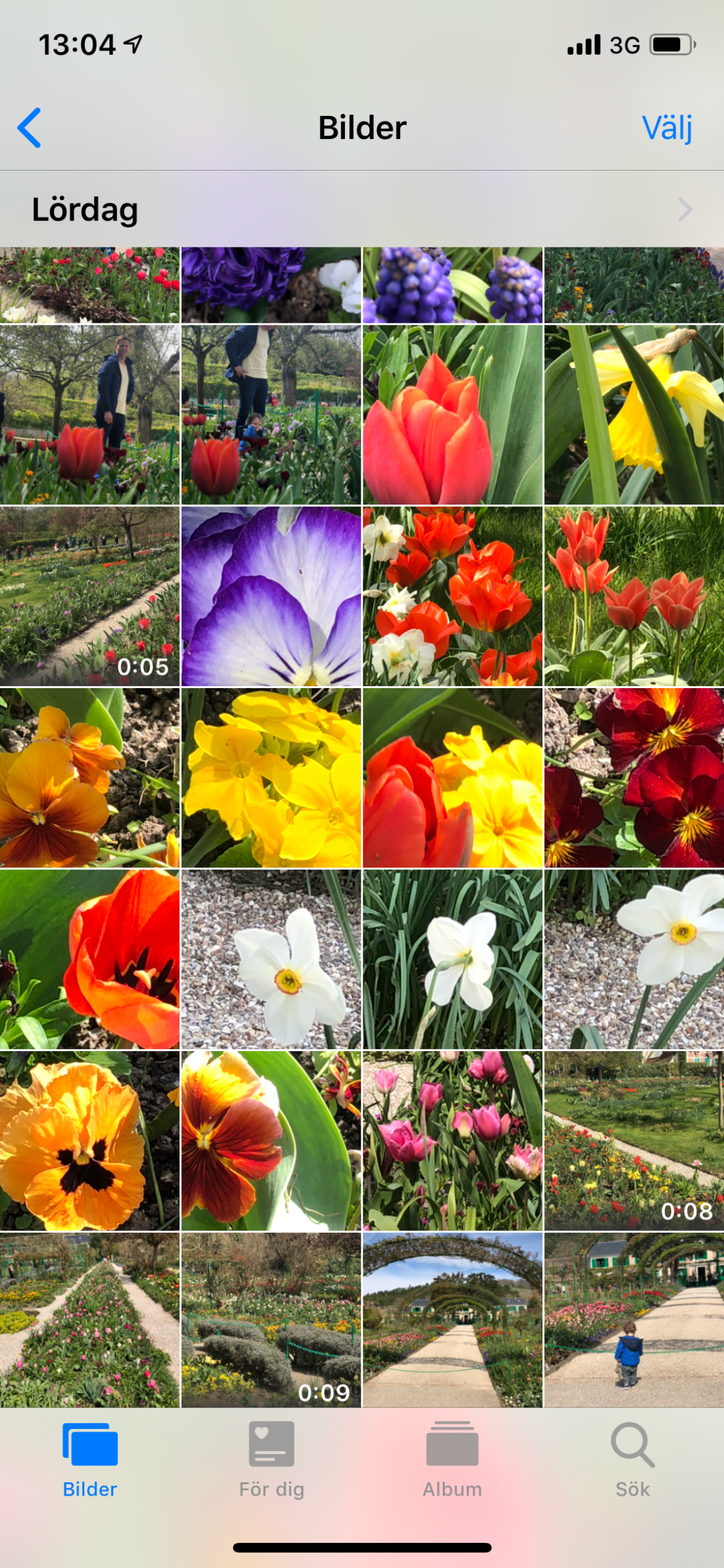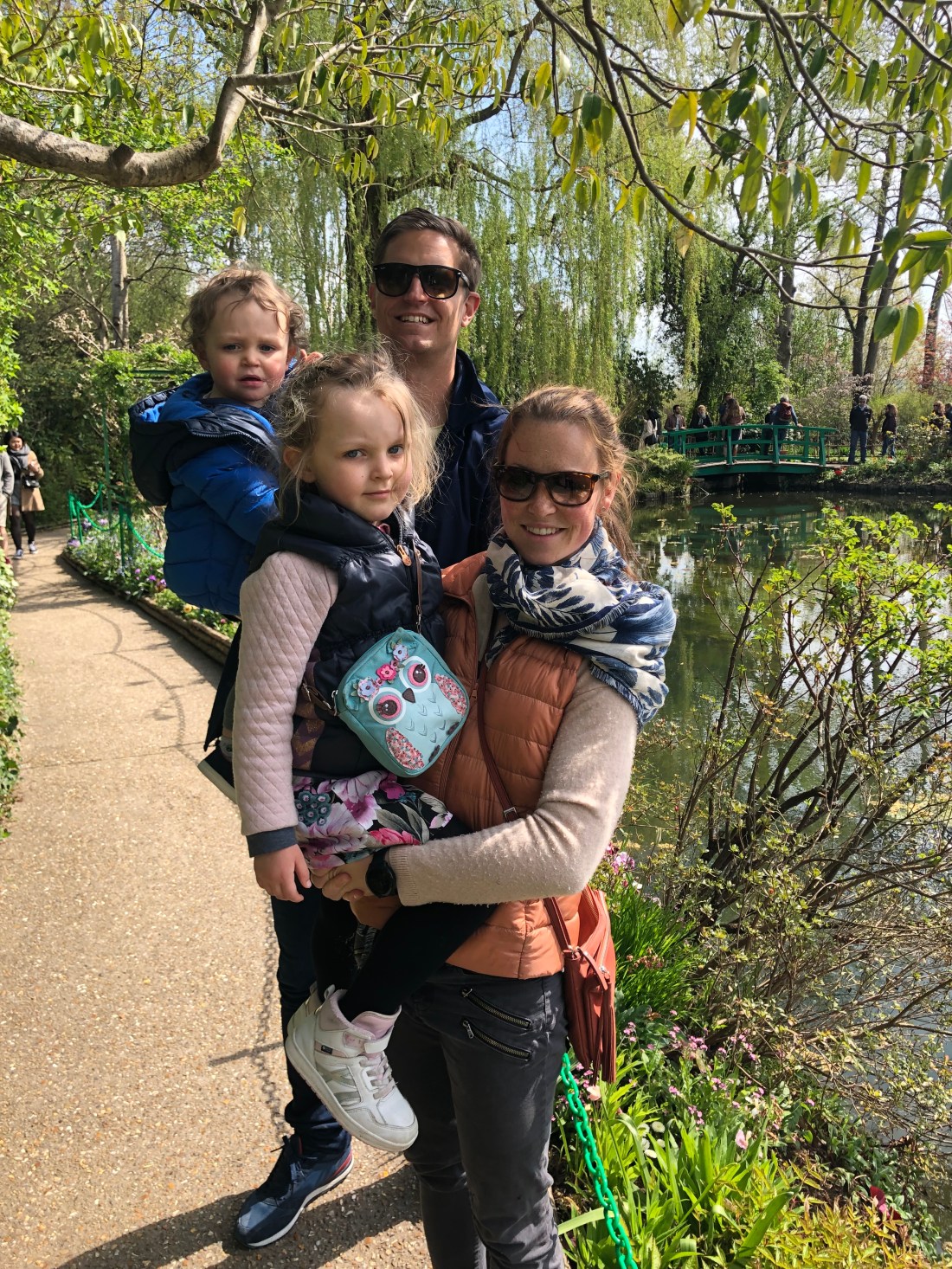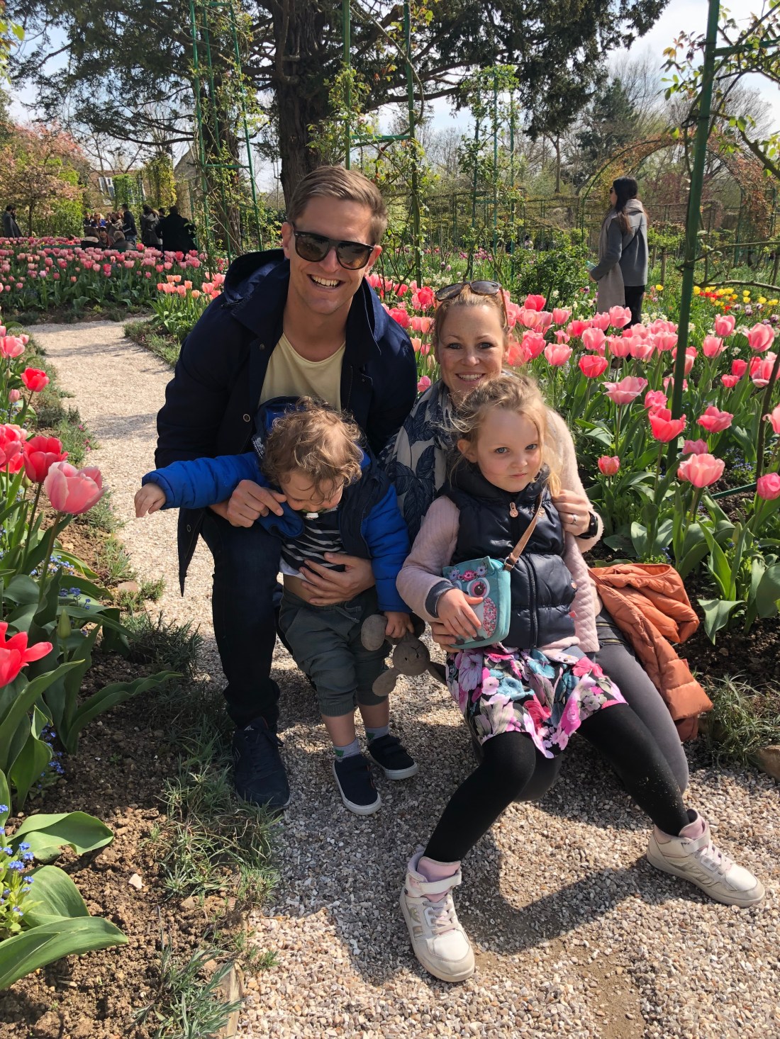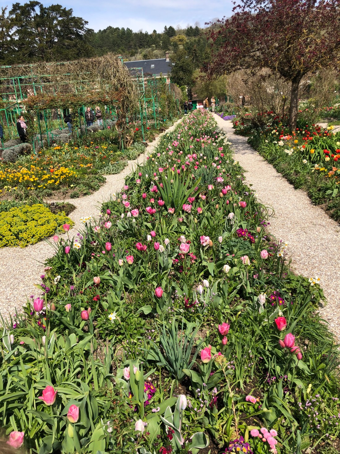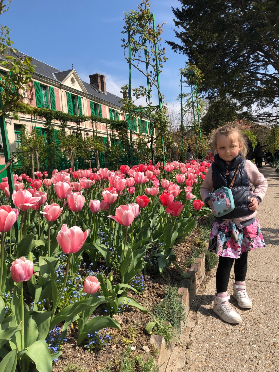 Det enda på helgens agenda var ett 2-års kalas på söndag em/kväll. Det tillåter ju en hel massa annat, om bara alla har dagsformen. Och det tyckte vi att vi hade. Så ut på tur med bilen i lördags – till Normandie och lilla pluttbyn Giverny. Här bor ca 500 invånare men mellan april- oktober får byn ca 500 000 besökare. Här ligger nämligen Monets hus, och kanske framförallt hans trädgårdar. Här skapade han ett landskap som han sedan spenderade många år med att måla av. Och det var verkligen en fantastisk blomsterprakt. Nu är det fortfarande tidigt på säsongen, kan tänka mig det ser helt annorlunda ut om några månader. Framförallt tulpanerna som stod för färgerna nu.