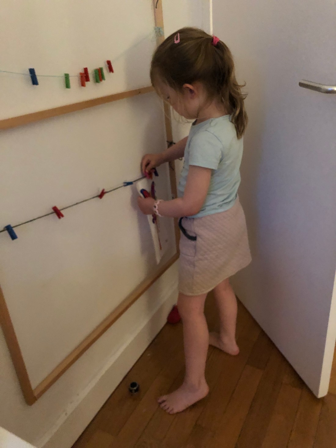 Lollo har fått in den stora ramen på sitt rum för att hänga upp teckningar i. Och hon är superpeppad, första teckningen hängdes upp igår under högtidliga former.