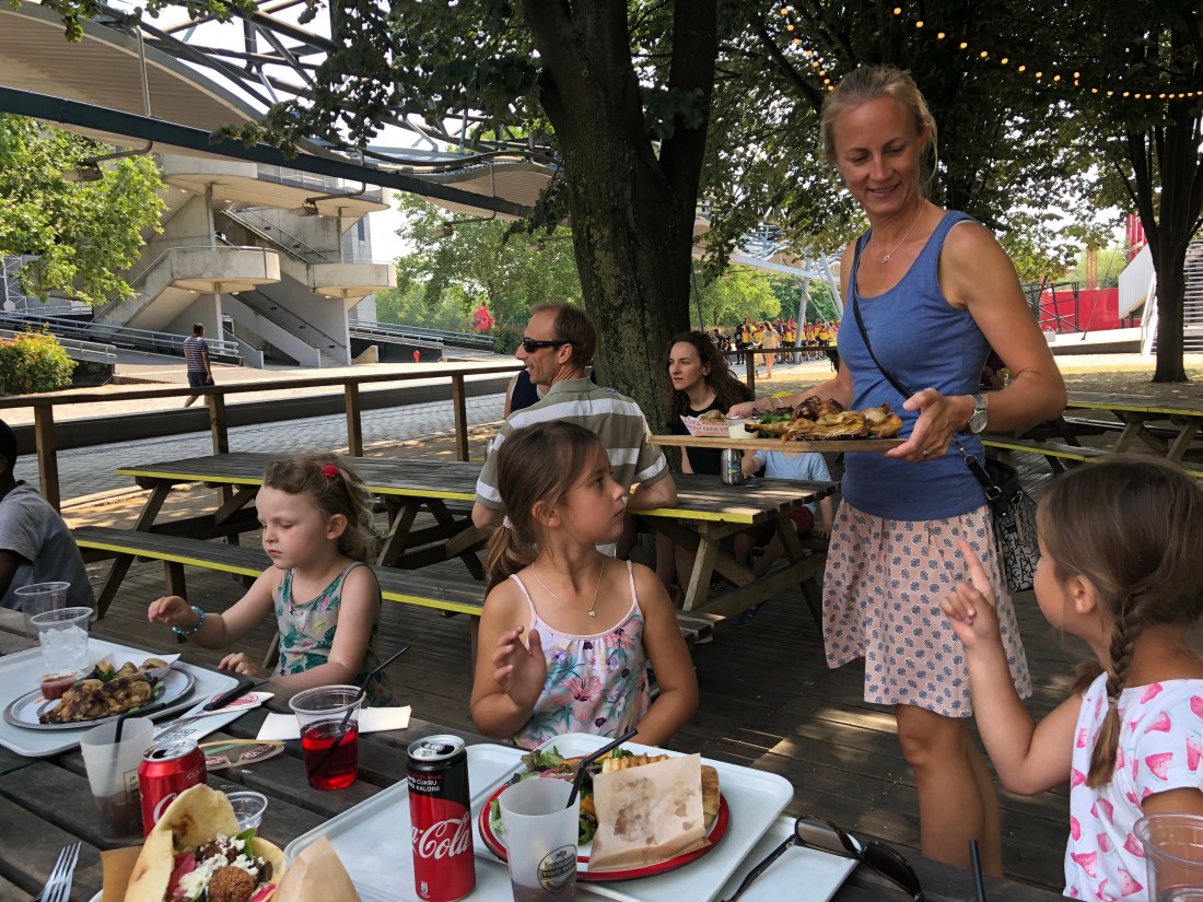 På vägen in stannade vi till precis i utkanten för lite lunch bestående av burgare, kyckling och falafel. Superhärligt ställe med stora bord utomhus i lagom skugga under stora träd👌🏻