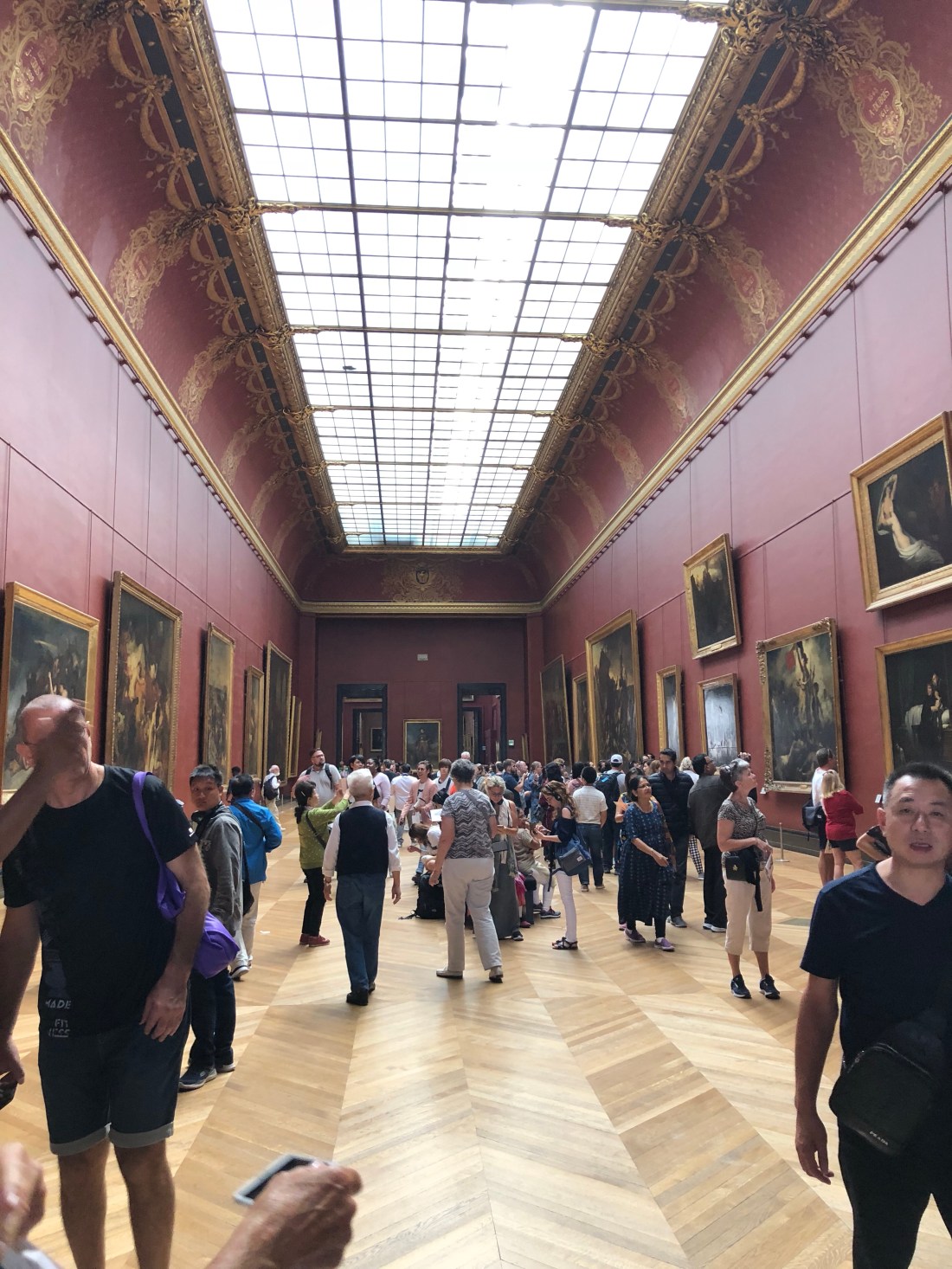 Även gårdagen var en superfin dag inne i Paris. Då var det bara jag och mamma och vi började dagen med besök på Louvren. Det skulle krävas många dagar för att ta sig igenom hela muséet men jag är glad att jag nu i alla fall varit där en gång under vår tid här. Helt fantastiska målningar såg vi, och hade audioguider med oss så att man får lite kontext runt verken. Helt nödvändigt och informationen där i var bra och intressant. Men själva guiderna i sig var förvånansvärt dåliga. Hängde med dåligt på var man befann sig, svåra att förstå sig på och väldigt långsamma. Som sagt förvånande, framförallt med tanke på att man betalar extra för att få tillgång till dem. Men det är en detalj. Givetvis såg vi Mona Lisa, och det enorma publikhav hon omger sig med…