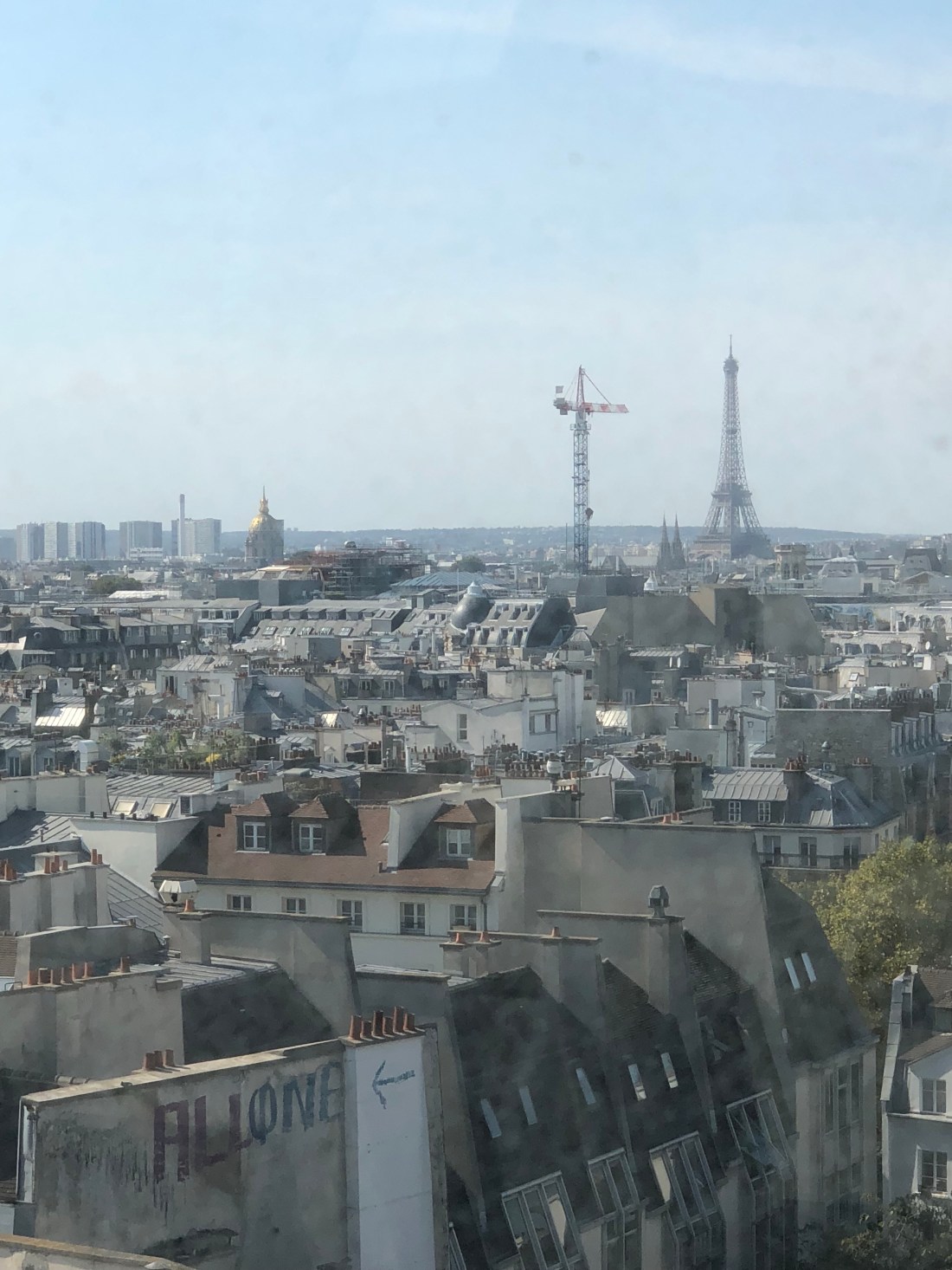 Vi åt sedan lunch högst upp på Centre Pompidou, som ligger centralt i Marais. Det är en rätt ful, men samtidigt väldigt cool byggnad. Man kan åka rulltrappor på utsidan av huset för att komma hela vägen upp till restaurangen med en stor terass. Nu var vi alltså inte inne i centret alls utan tog bara den utvändiga rutten för en lunch med utsikt👌🏻