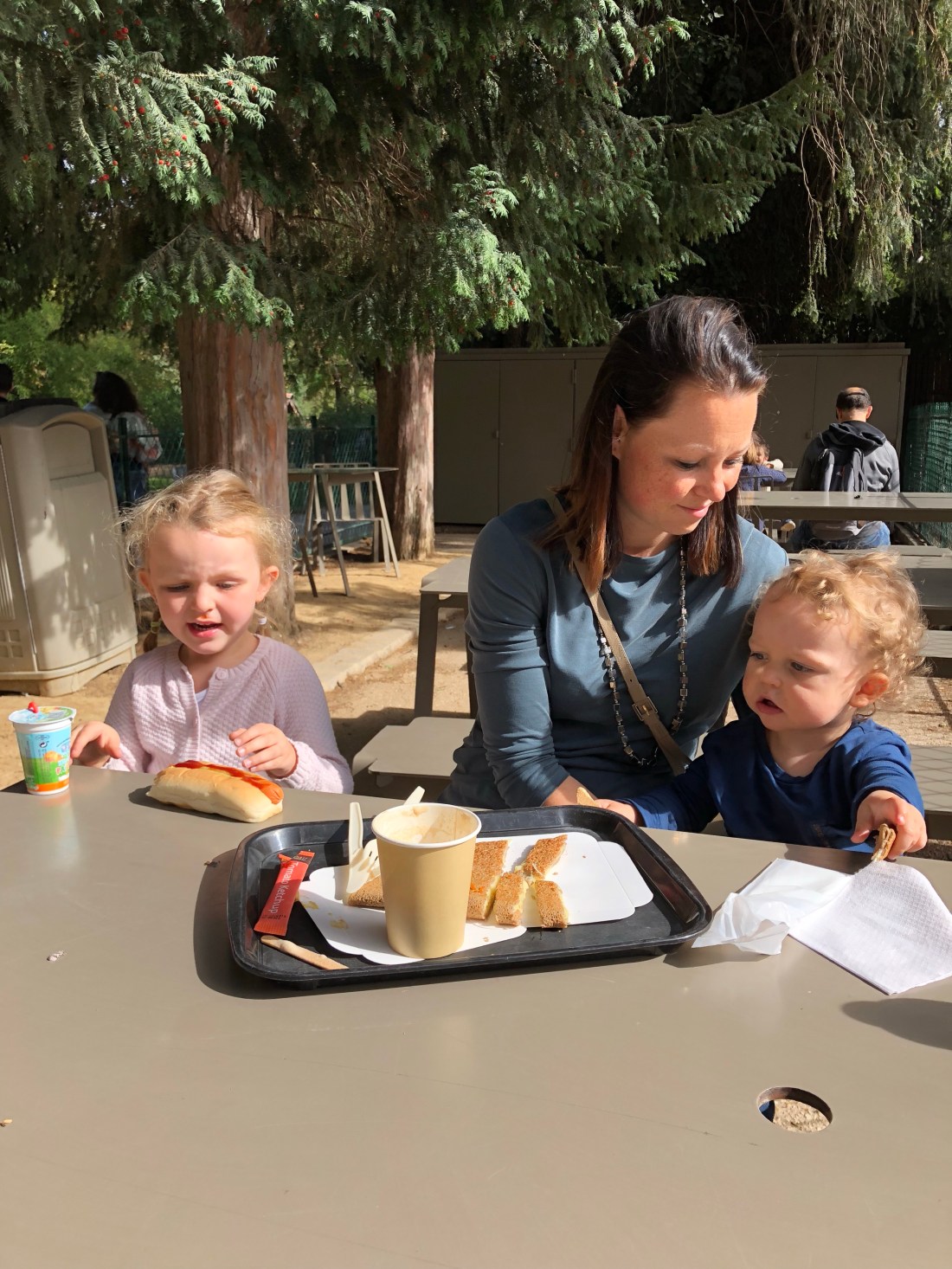 Jardin des plantes fick bli lördagens första utflyktsmål. Här har vi varit flera gånger tidigare och det blir garanterat flera gånger till. Det är i grunden en stor park. Men den är liksom extra fin. Här finns en botanisk trädgård, naturhistoriska muséet, en bra lekplats, ett zoo… Helt fantastiskt. Nu är vi alltså borta i östra Paris, vid Gare d’Austerlitz. Så efter parken styrde vi stegen mot Seine för att först besöka Île Saint-Louis, den lilla ön precis bredvid Notre Dame. Och sedan såklart alltså Notre Dame. Lite lunch klämde vi in där också. Tyvärr hade det där ombytliga vädret då slagit om från sol till blåst och moln så det blev inte den längsta lunchen. Men goda omeletter till de vuxna och vinkar till Sam från alla våra bordsgrannar.