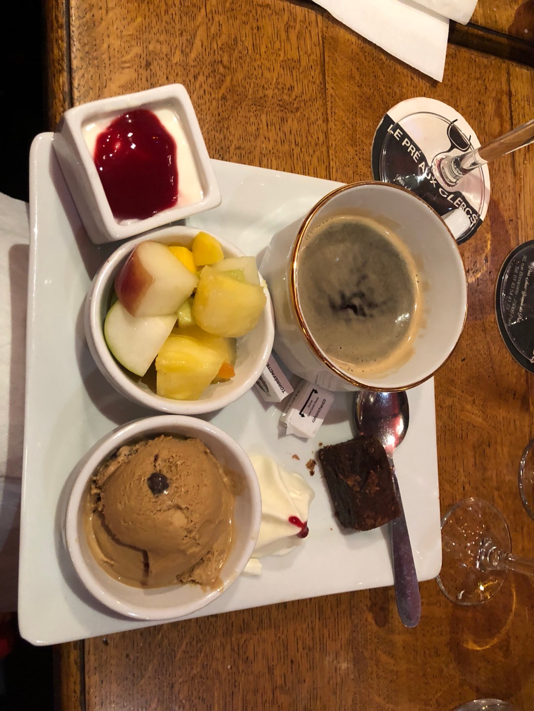 Om man inte kan bestämma sig för vilken efterrätt man vill ha är ”Café gourmand” ett tips: då får man kaffe och ett urval minidesserter👌🏻