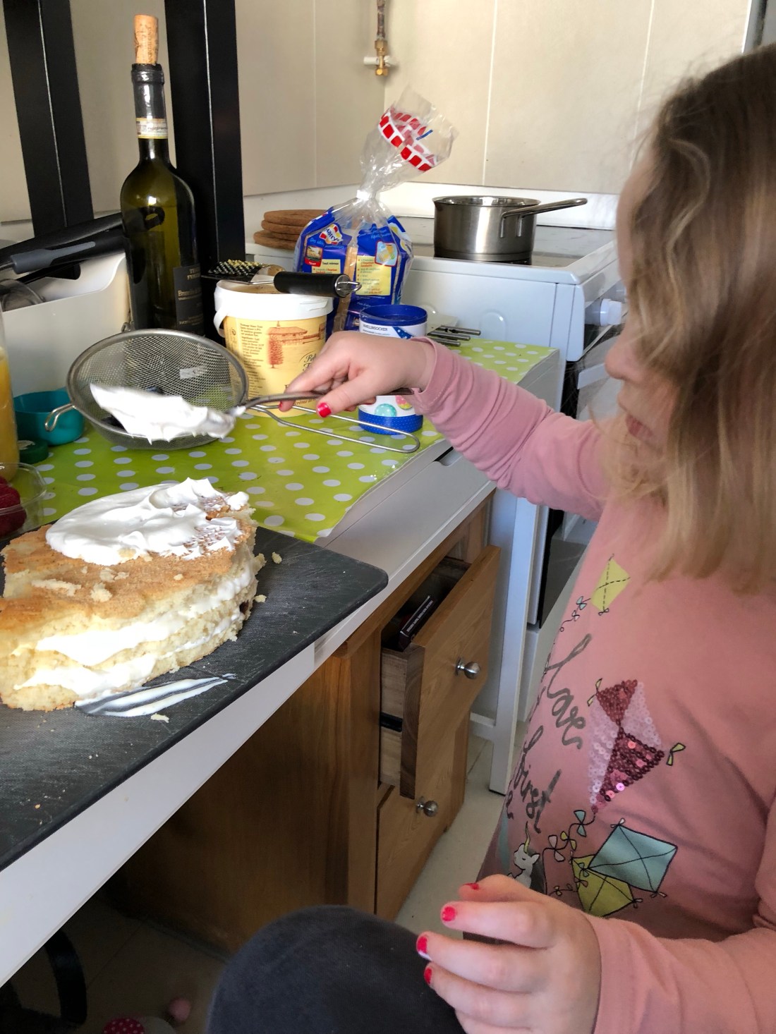 Men även en hel del inomhustid idag då vi har bakat en annan svensk klassiker- semlor. Mums! Men att baka är lite av en utmaning i köket just nu. Kanske inte alla som vet men vi har just nu bara vitvarorna i köket, alla skåp/bänkskivor kommer om några veckor. Detta är ju eftersom man ofta tar med sig sitt kök när man flyttar i Fr, så det ingår inte i en hyresrätt att ha ett inrett kök😳 det har ändå fungerar över förväntan, men man saknar framförallt lite arbetsyta. Bakmaskinen har t ex hittat sitt hem här ovanpå mikron.