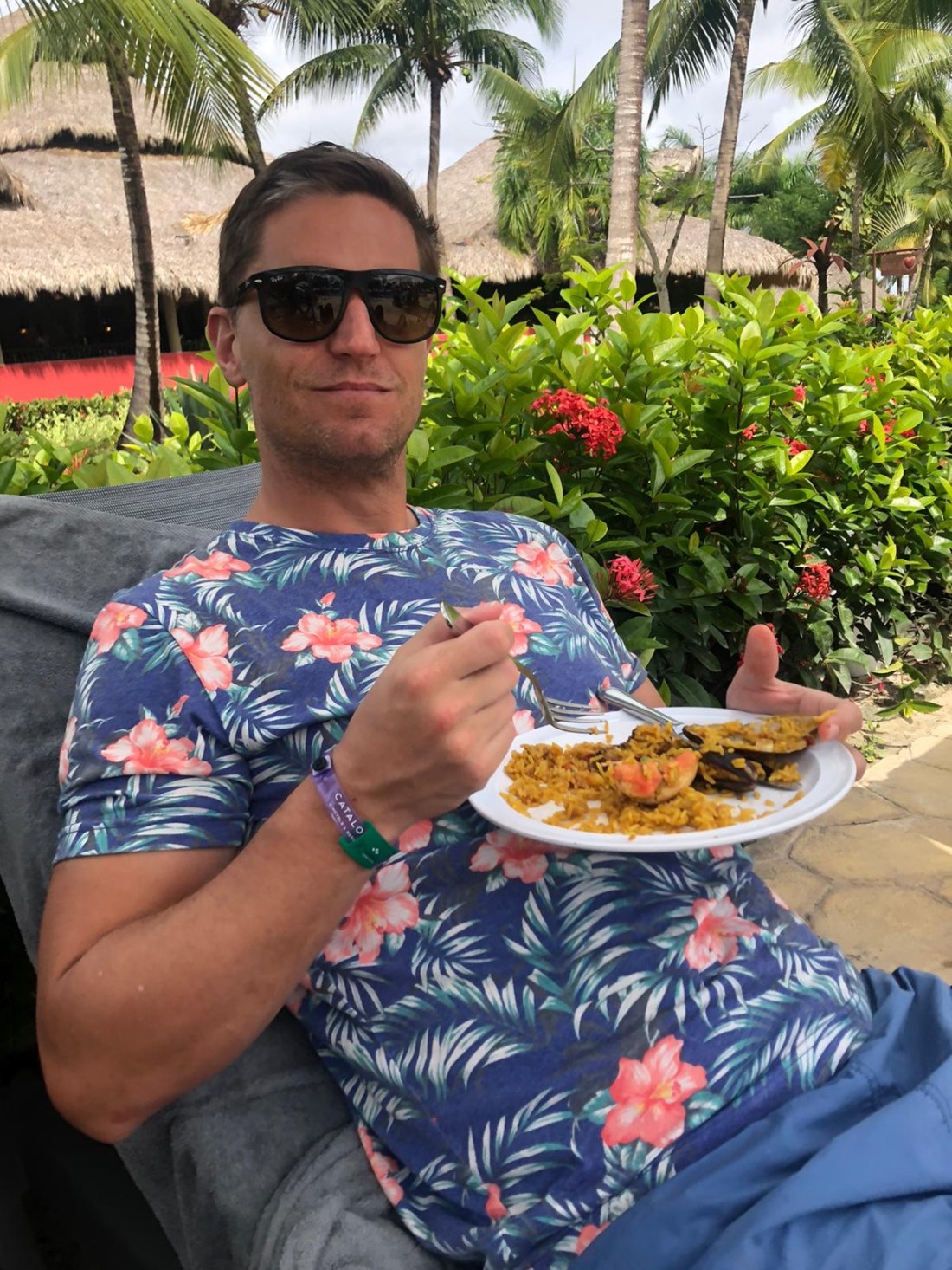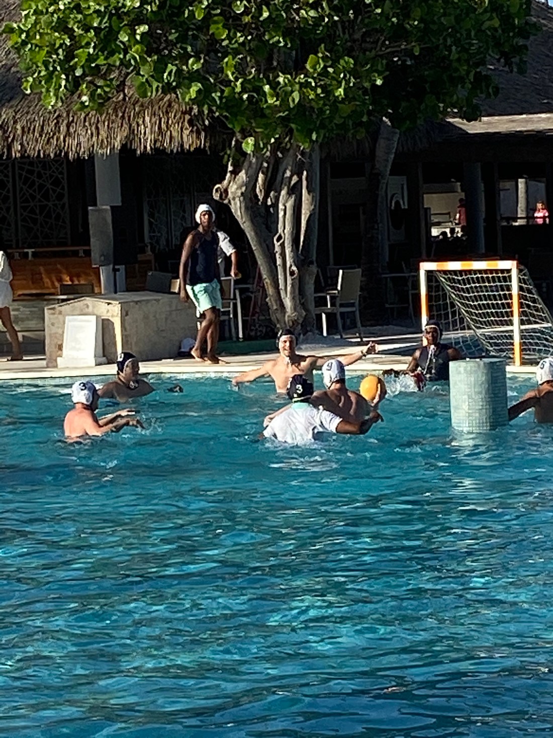Och så får vi inte glömma Tomas deltagande i lite av hotellets aktiviteter: vad sägs om bågskytte och vattenpolo? Söt i mössa ju😍