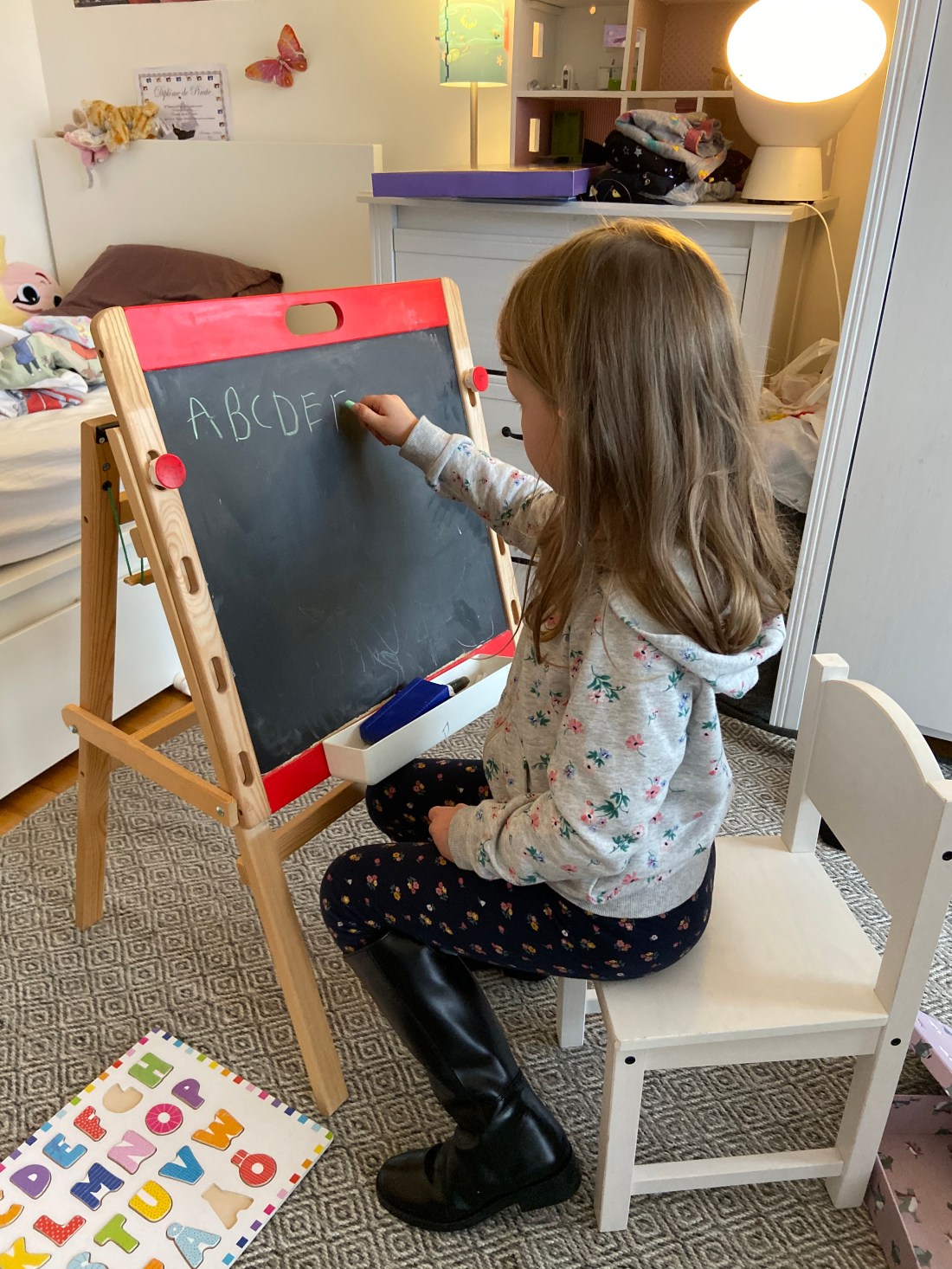 Vi gick ut seriöst med lite ”skola” imorse. Bokstäver och lite franskaprat på schemat🤓