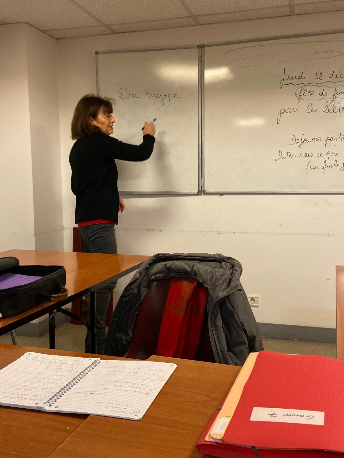 Sedan fick Lollo följa med mig på franskalektion där vi idag hade lika många barn som vuxna🤪 normalt är ju barn inte tillåtna med det var en speciell dag idag. Vår lärare hade med sitt barnbarn och de andra sina barn. Det var rätt mysigt. Och alla barn satt som små ljus med sina målarböcker. Så inga som helst problem. Margot (barnbarnet) 8 år hjälpte oss svara på vissa svåra frågor som Michèle ställde😂