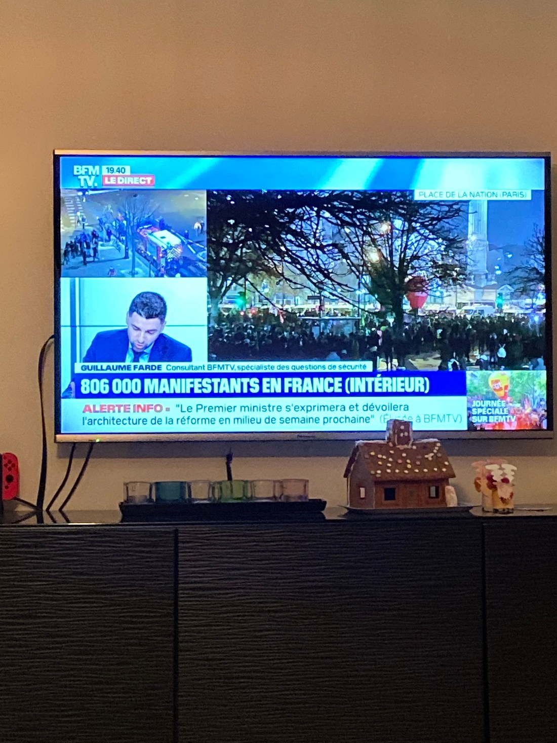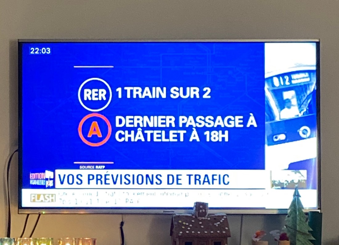 Det pratas om 1,5 miljoner personer som demonstrerat runt om i landet idag. Andra siffror säger 800′. Många är det iaf och på sina håll har det varit våldsamt och använts tårgas. Det handlar alltså om föreslagna förändringar i pensionssystemet som folk är extremt missnöjda med. Man jämför mycket med den långvariga och väldigt omfattande strejken -95. Och det finns risk att denna strejk håller i sig fram till 27 dec. På vårt lilla personliga plan inbär det en liten oro för att vi eventuellt inte skulle kunna komma iväg på vår resa. Flygledare strejkar nämligen också. Och Air France blir tydligen ofta mest utsatta som det franska storbolag de är. Just idag har det på vårt lokala plan också inneburit att Lollos skola varit stängd. Tomas (och nästan alla hans kollegor) har jobbat hemifrån. Vår lilla lokal butik var stängd imorse, man får gissa för att folk inte kunnat ta sig dit.