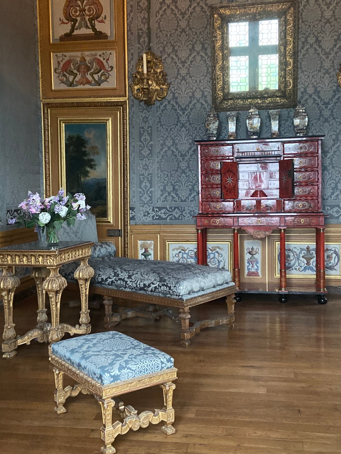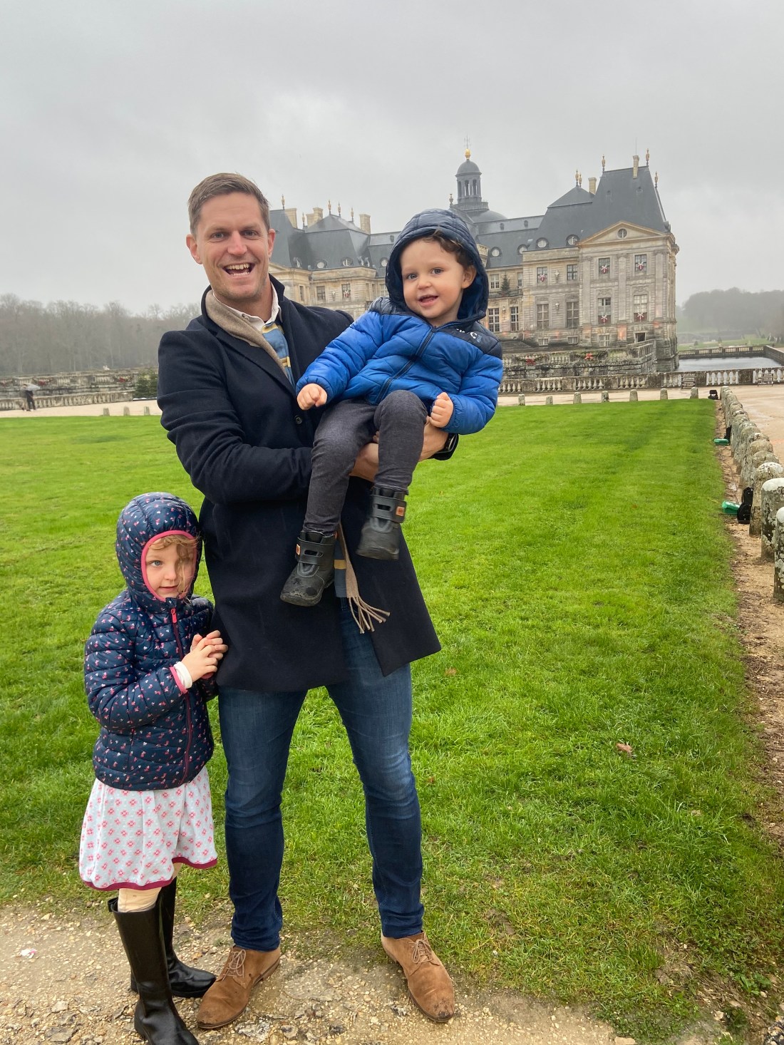 Nu byter vi ämne helt och hoppar till den gånga helgen. Då tog vi oss till ett riktigt julbesöksmål för parisare: Chateau de vaux-le-Vicomte. Detta är ett slott som ligger ca 50 min sydöst om oss. Ett fantastiskt fint slott, med en väldigt vacker slottsträdgård. Man fick liksom en snitslad tur på slottet, först med vanliga slottsrum (iofs fina men inte superspännande för barnen). Men andra halvan av turen har hade de byggt upp jättefina julmiljöer i rummen. Turen avslutades med en promenad i trädgården där barnen fick en liten överraskning i tomtens stuga. Väldigt mysigt, men en riktig blä-dag. Snålblåst och regn🥶