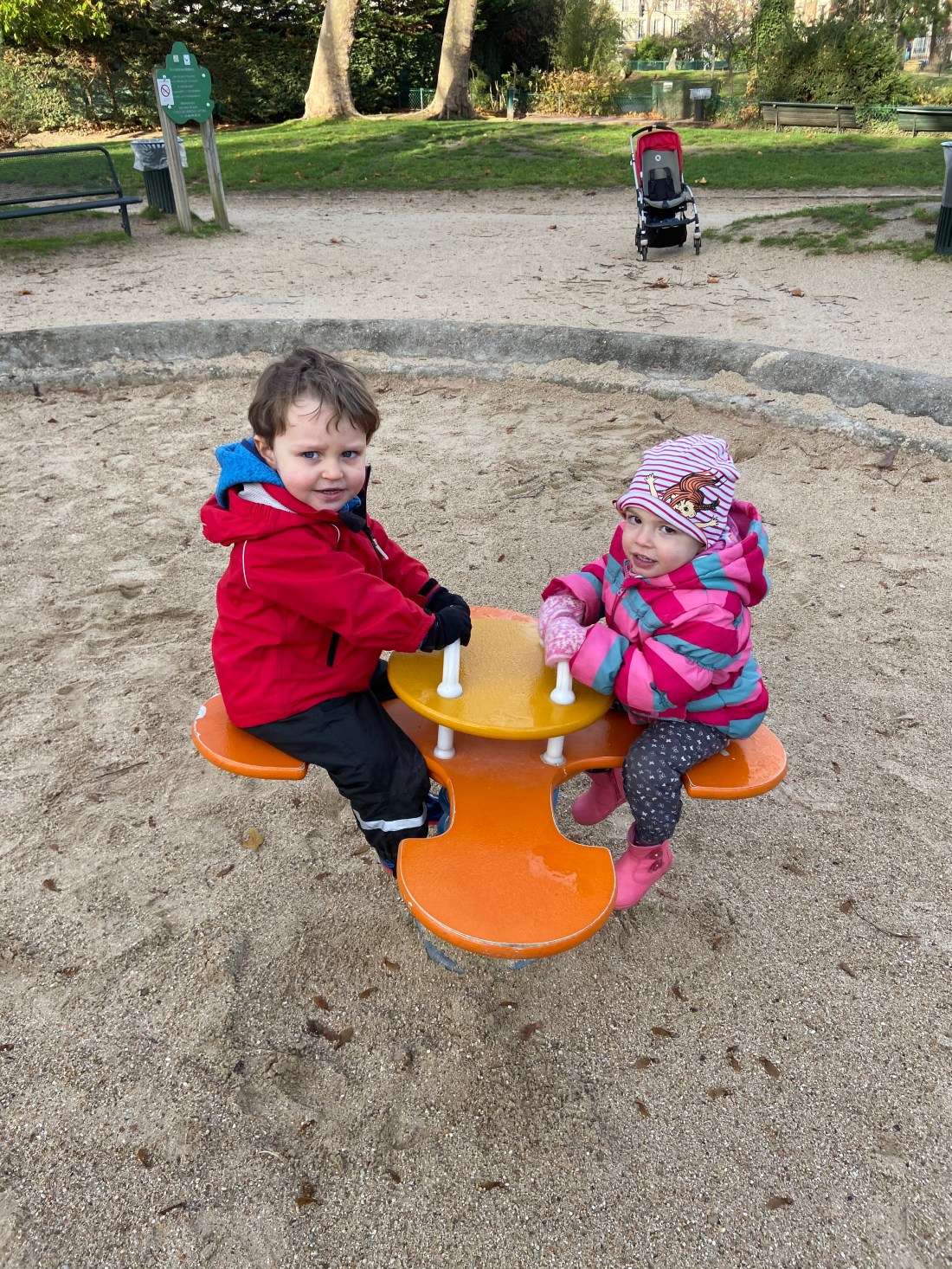 Men igår var det bättre. Tog oss till en park och lekte med hans kompis Laura från creche.