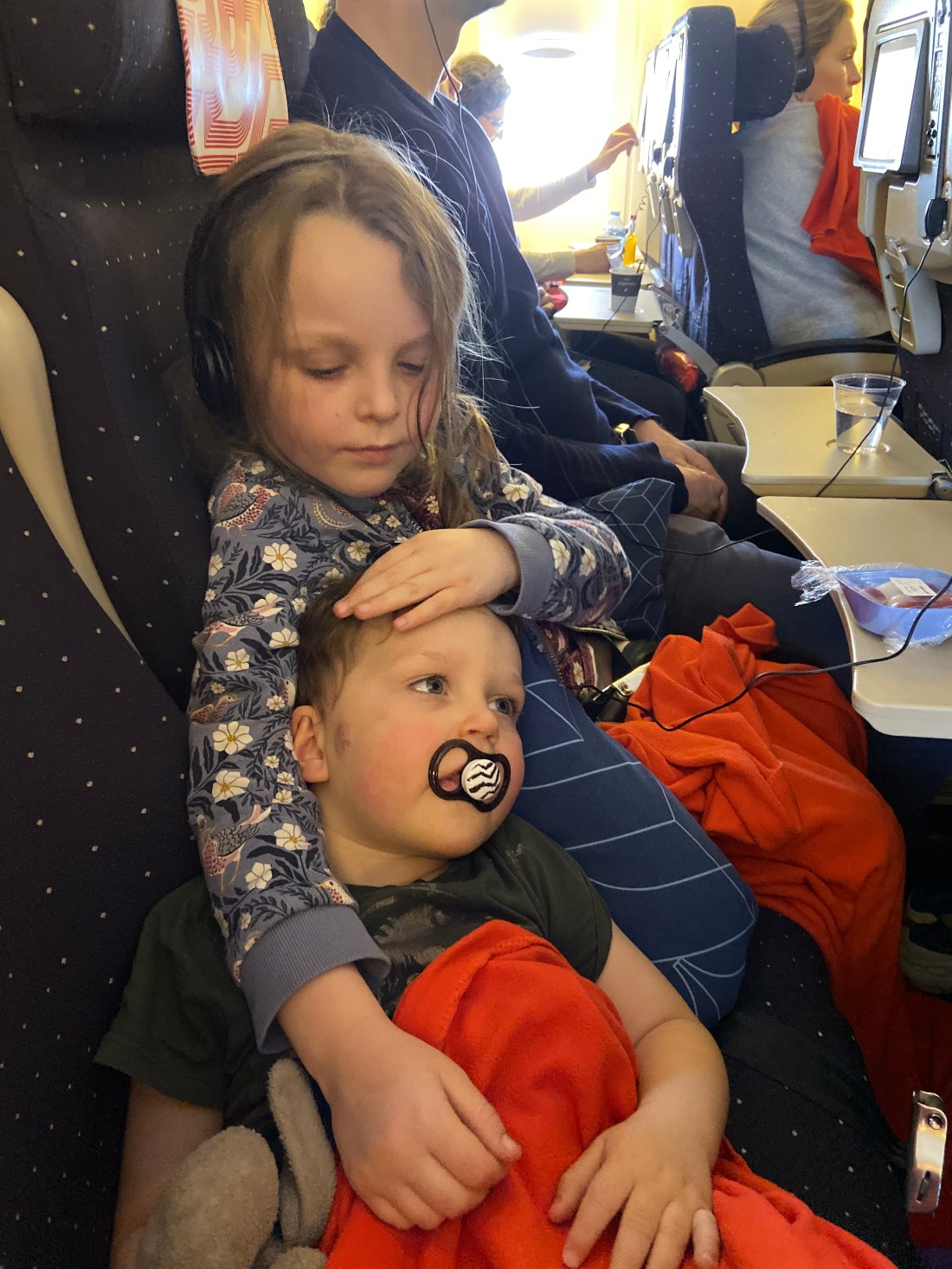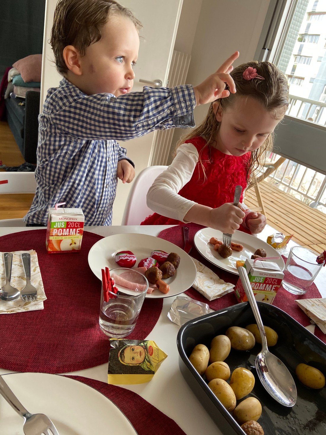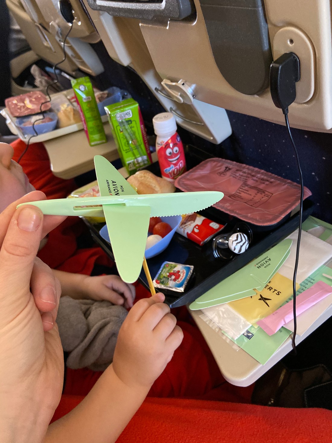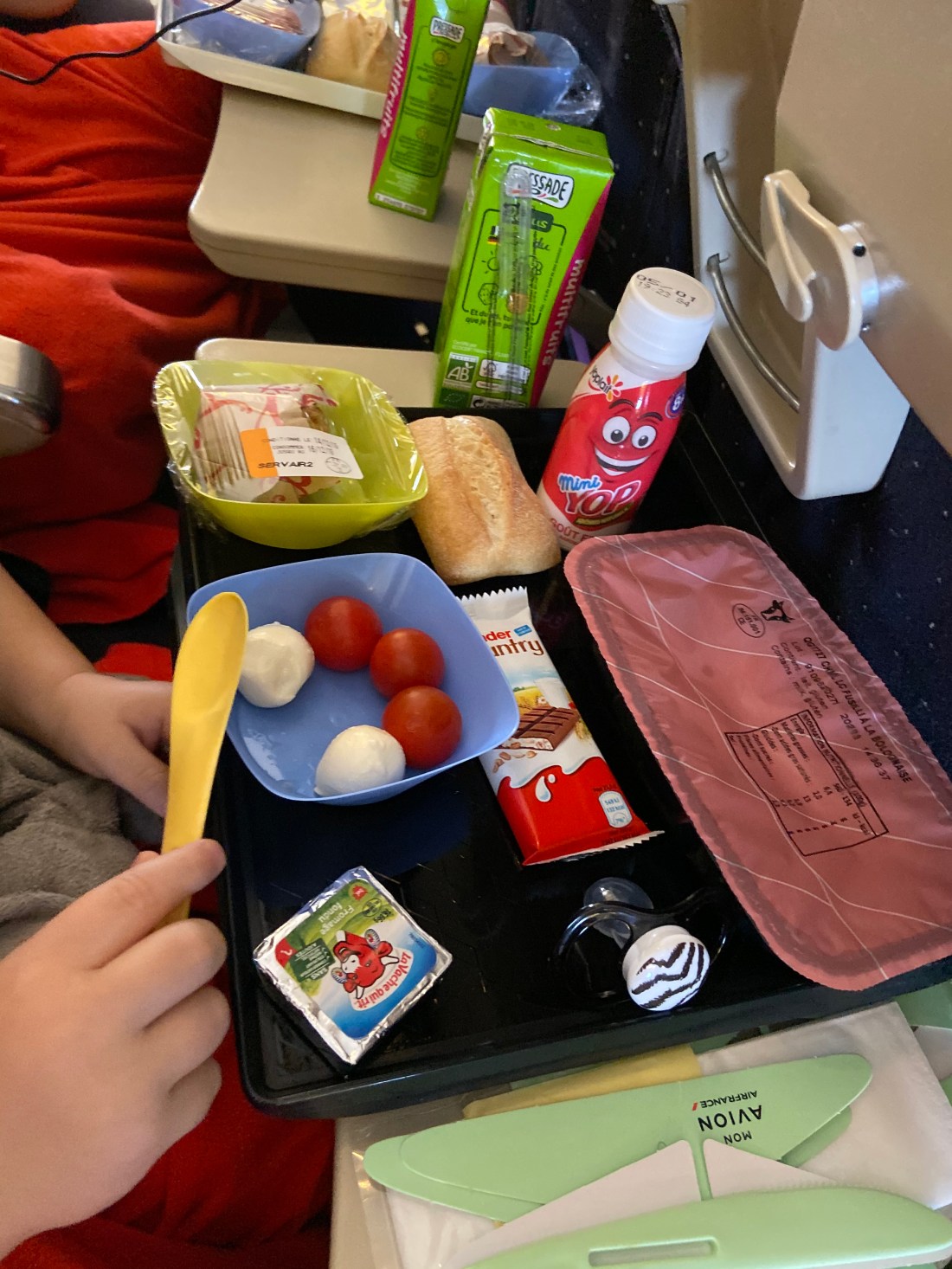 👆🏻 jag älskar pyssligheten hos Air France. Till att börja får de plus eftersom alla barnmåltider serverades först. Sedan fick man tillsammans med servetter/bestick några vingar i kartong så att man kan leka med sina bestick efteråt. Barnen fick även varsitt underhållningskit med jättefina och pyssliga saker (som undertecknad använde mest😂). Resan gick i alla fall jättebra, och sedan fanns transfern tillgänglig precis enligt plan. Väl på hotellet var ju klockan bara 8 lokal tid så vi intog en väldigt sen middag, fransk tid. Lollo och Sam var sååå trötta, men båda var hungriga så för att ha en chans att sova kändes det ändå viktigt.