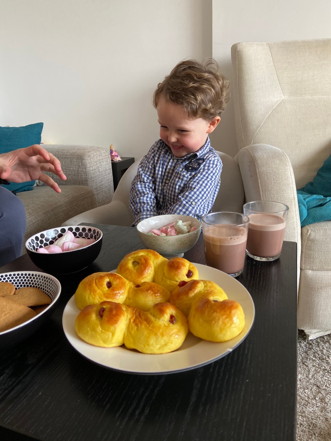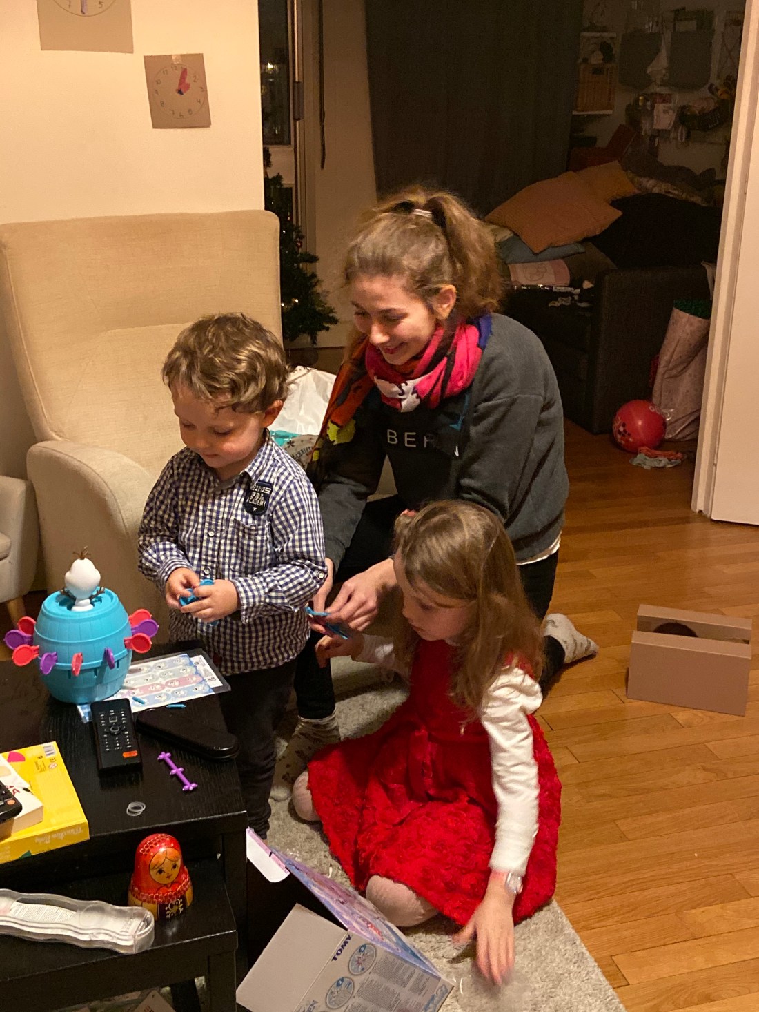 Och medan vi roade oss med sport hade barnen årets sista kväll med Pauline – vår grannbarnvakt. Hon är så himla gullig. Hon messade speciellt på dagen och undrade om Sam kunde få vara vaken en liten stund längre än normalt så att hon kunde få ge honom en julklapp. Så fortsatte julafton för barnen😜