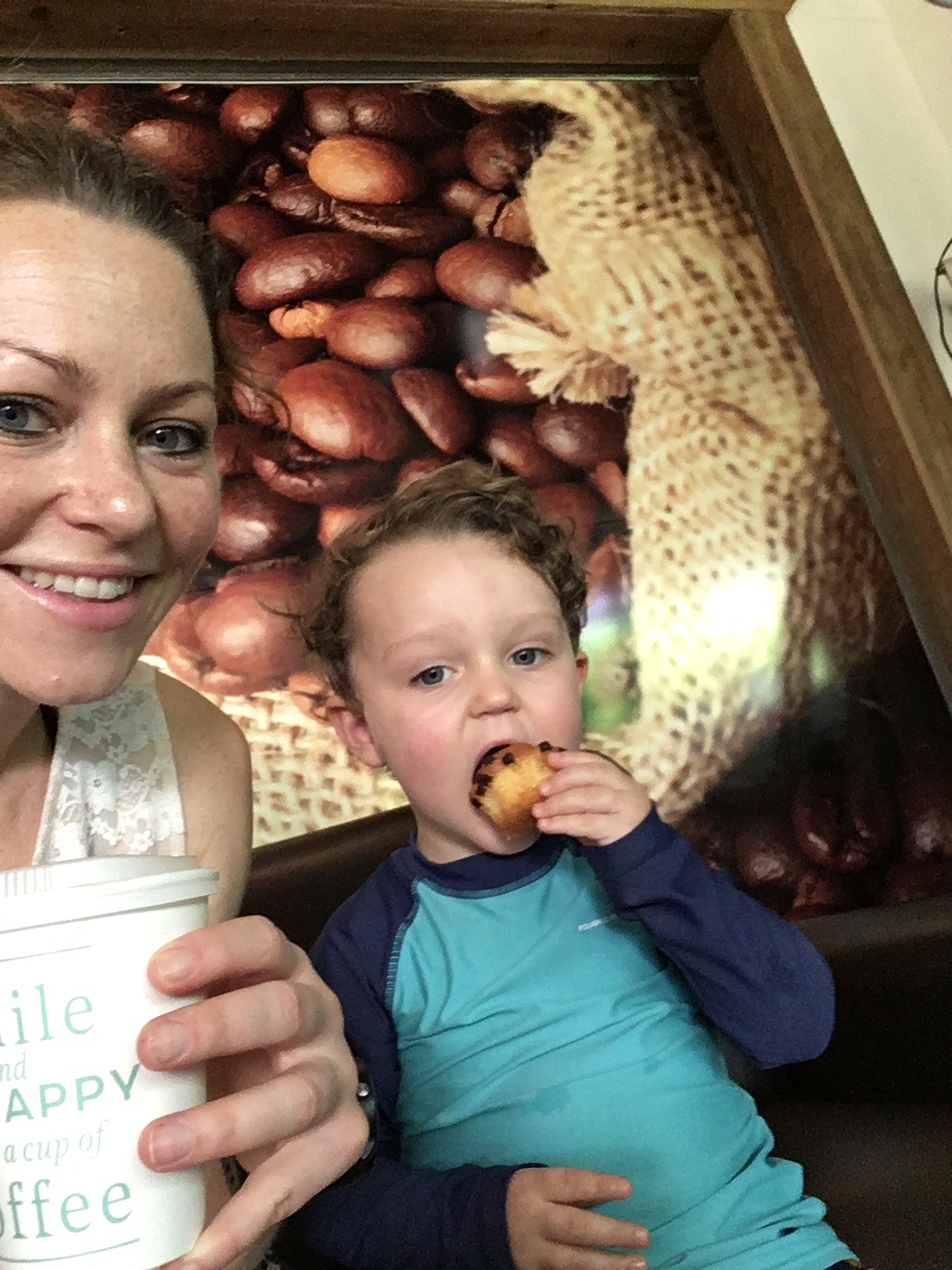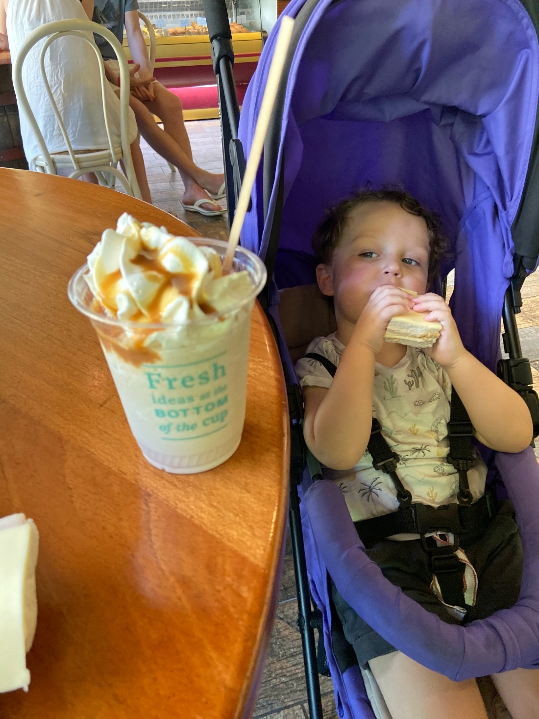 Eftersom vi fortfarande vaknar lite tidigt på mornarna så kände jag på mig att Sam inte skulle klara sig hela vägen till 12.30 när lunchen öppnar. Så vi tog dagens andra besök på caféet för en nödmacka (och en frappucino till mig☺️)