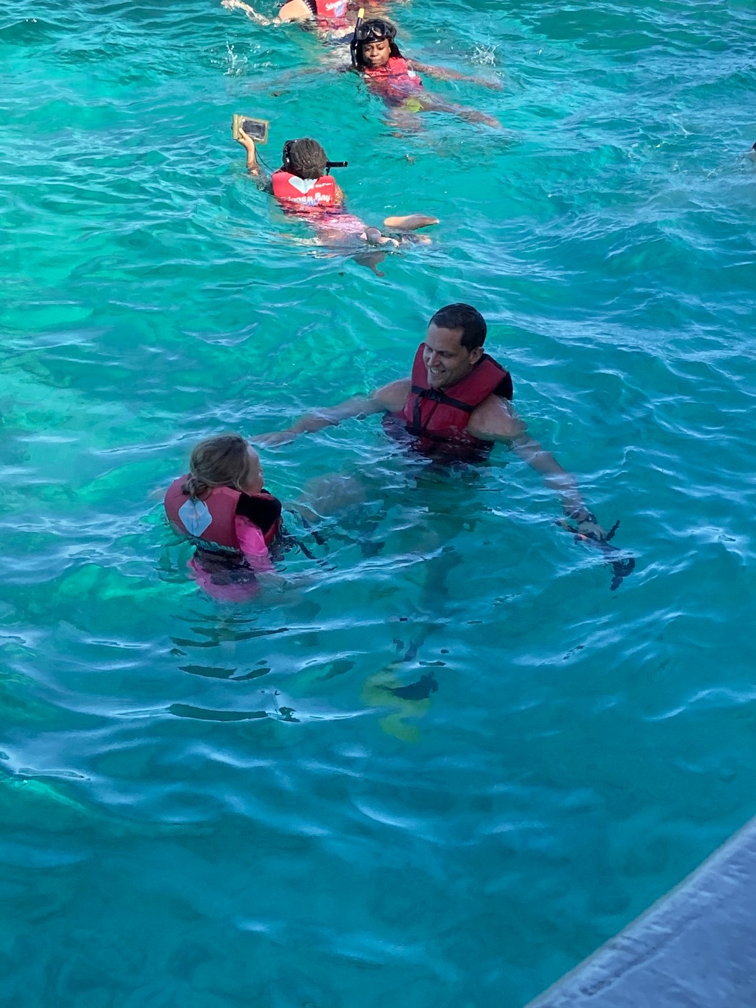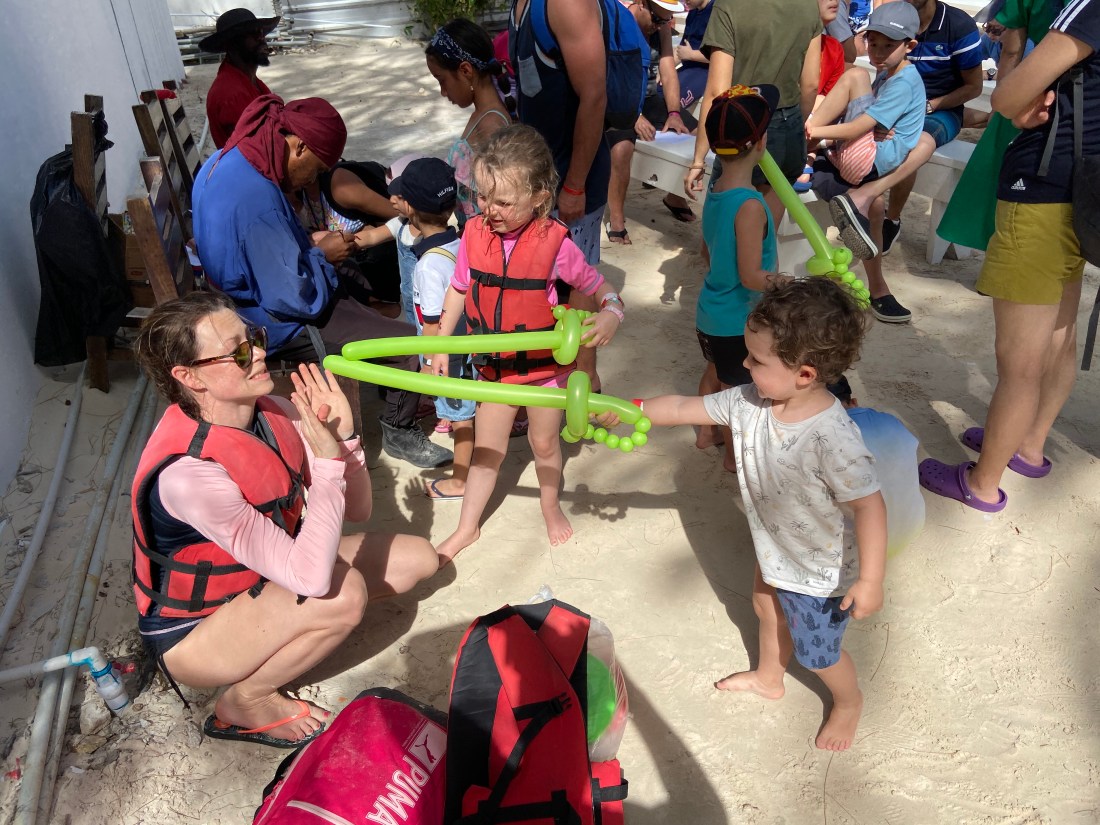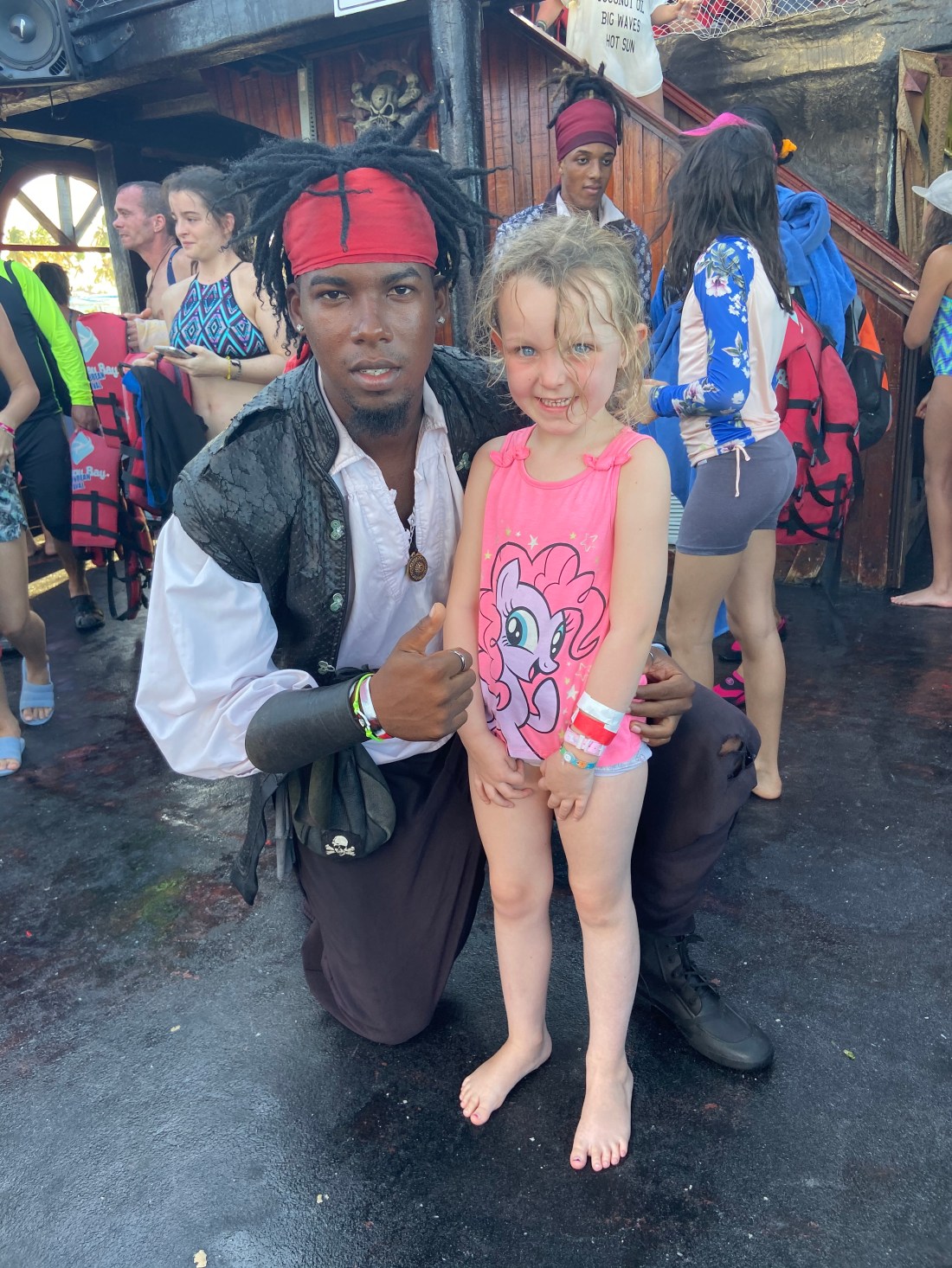 Dels var det en hel del piratiga inslag, som teaterscener som spelades upp på båten, och ibland interaktiva sådana. Lite läskigt tyckte Lollo, men också roligt. Som att dansa med en pirat. Något annat som först var läskigt och sedan ”det bästa någonsin” var att snorkla. Hur impad som helst av henne. Hon gick i med Tomas men kom upp snabbt igen. Men i samma ögonblick hon var uppe ville hon i igen. Liksom som för att samla sig. Och då gick det jättebra och hon låg där och guppade hur länge som som helst.