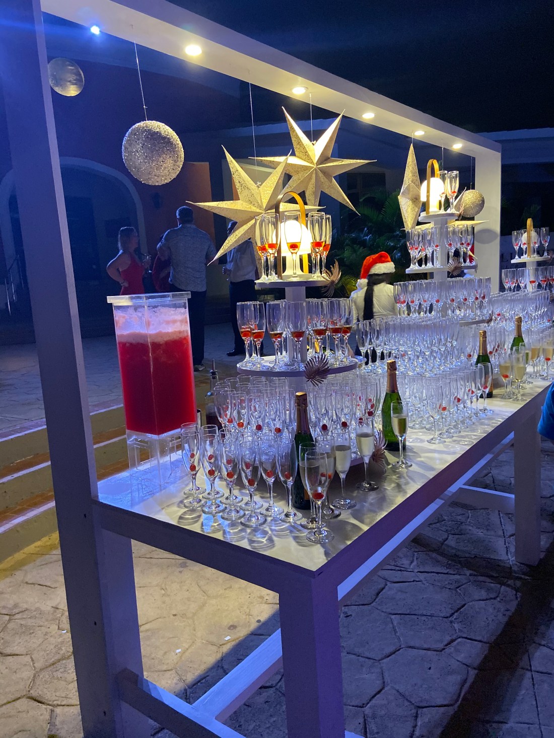 Allra först var det förresten jul-fördrink på plazan. Alla de klassiska julelementen: tre vise män, Jesusbarnet och så champagnebaren🥂