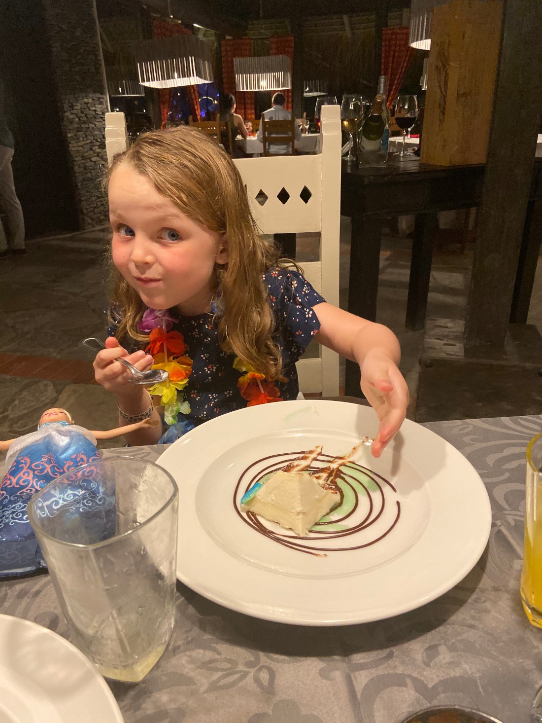 Men igår var det alltså julafton och även om vi firade jul hemma innan vi åkte så delades en liten julklapp ut igår imorse. Tomten hade varit här och lämnat varsin sak från barnens önskelista. Askungen-Barbie stod det på Lollos lista, och den har det lekte med nästan non-stop sedan dess. Hon får hänga med och äta, ligga i solstolen osv. Det delades också ut en del 2 av min julklapp. Jag har trott att det handlade om en aktivitet här, men icke. Tydligen ska jag iväg på någon typ av tjejresa i början på mars😄 Vart är fortfarande helt oklart, men vi är åtta stycken som lyckats hitta varandra genom en lång kedja av samtal. Blir spännande detta☺️