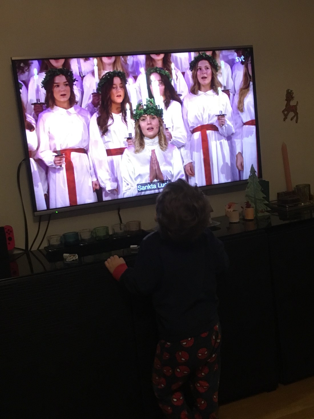 Så nöjd med att vi fick in SVTs Lucia imorse. Sam var alldeles hänförd (i 2 min iaf) och Lollo tyckte också det var mysigt, även om hon hellre tittat på något annat. Men vissa saker är heliga. Någon typ av luciatåg måste man ju se.