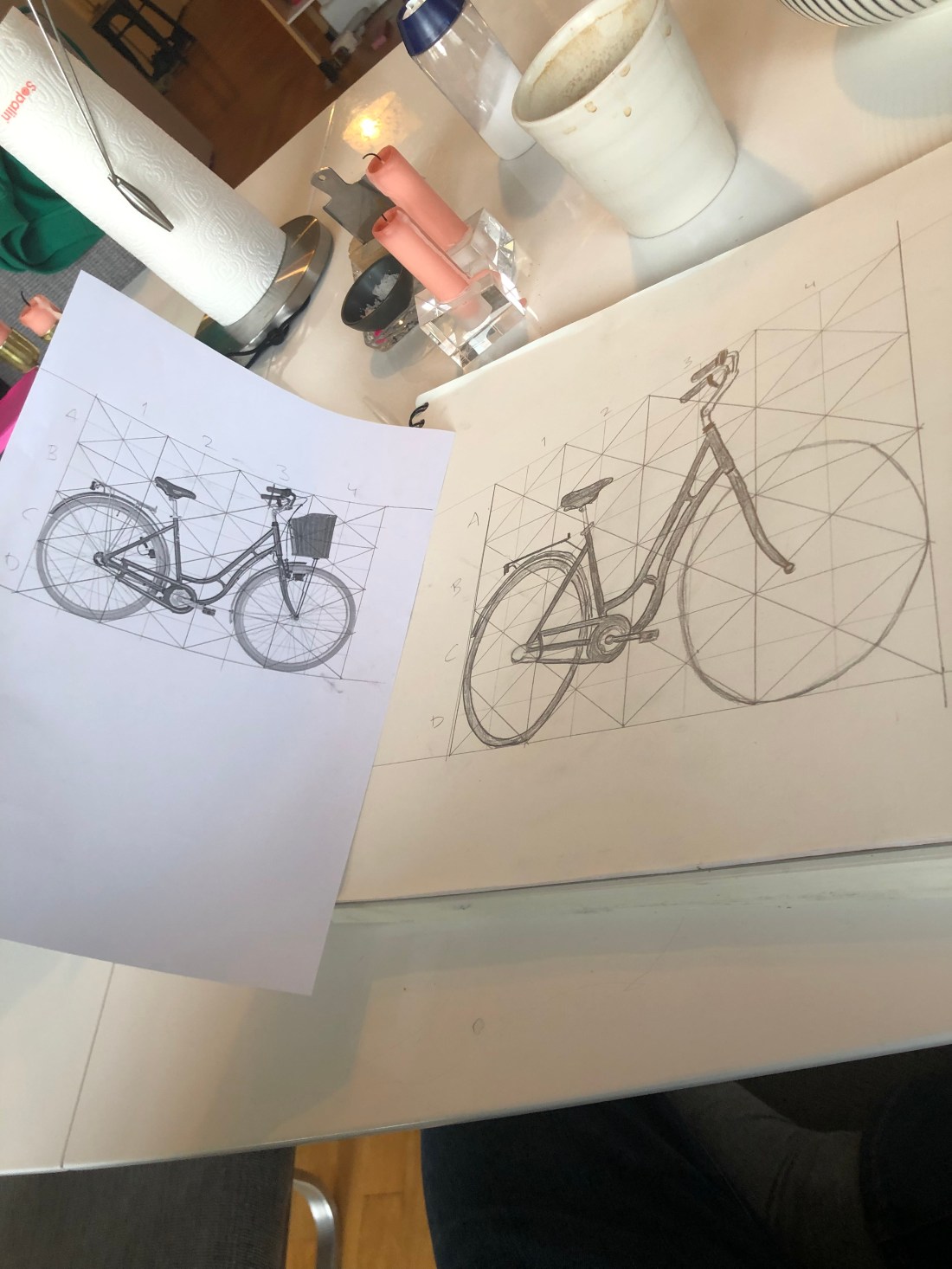 Igår var målarkurs där vi fick jobba med att vrida på perspektiven på en cykel. Den jag gjorde igår blev väldigt utdragen så leka de en ny variant idag. Detta är jättekul men svårt och där med fortfarande väldigt tidskrävande. Men igår gjorde jag färdigt min cykel ganska snabbt och gick sedan runt och minglade lite. En av orsakerna att jag är där är ju att öva franska. De flesta var förvånansvärt pratglada och visade gärna alla sina olika målarkit och saker de hade gjort.