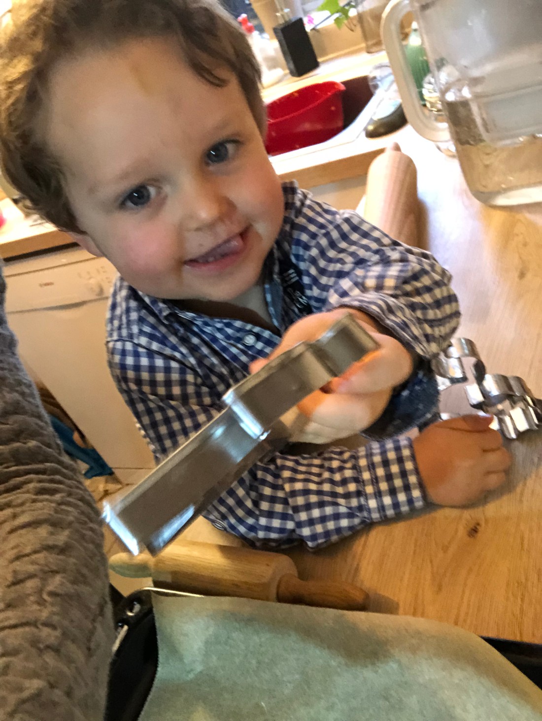 Något vi köpte på Ikea var pepparkaksdeg, så det var gårdagens projekt. Alla deltog efter bästa förmåga. Lollo tycker mest det är roligt att dekorera de färdiga kakorna. Och Sam tycker mest bara det är kul att vara med och hjälpligt imitera det Lollo gör.