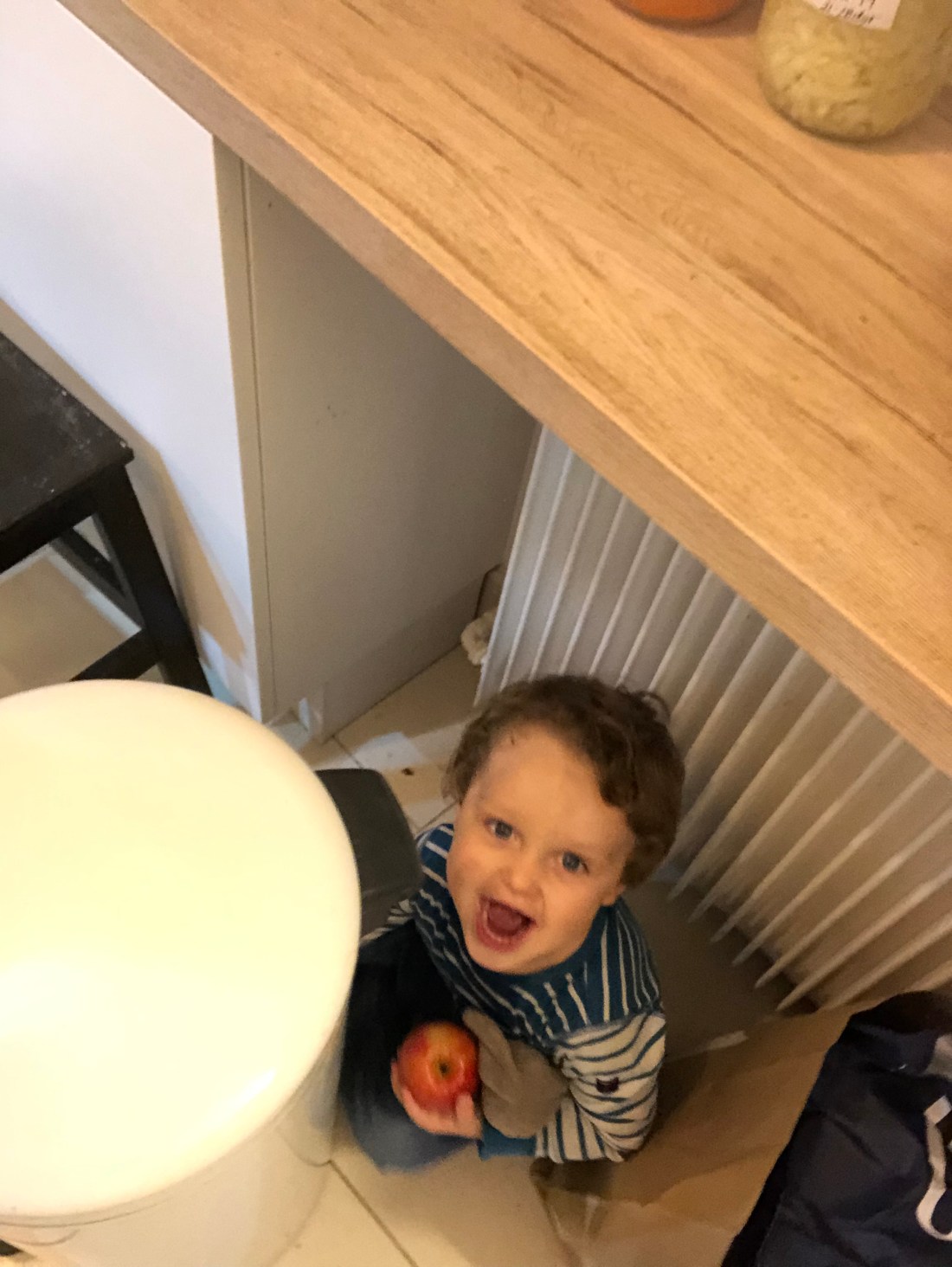 Innan jag blev dålig igen så hade iaf jag och barnen en mysig dag i onsdags. Här försöker Sam gömma sig och sitt stöldbyte🍎🤣