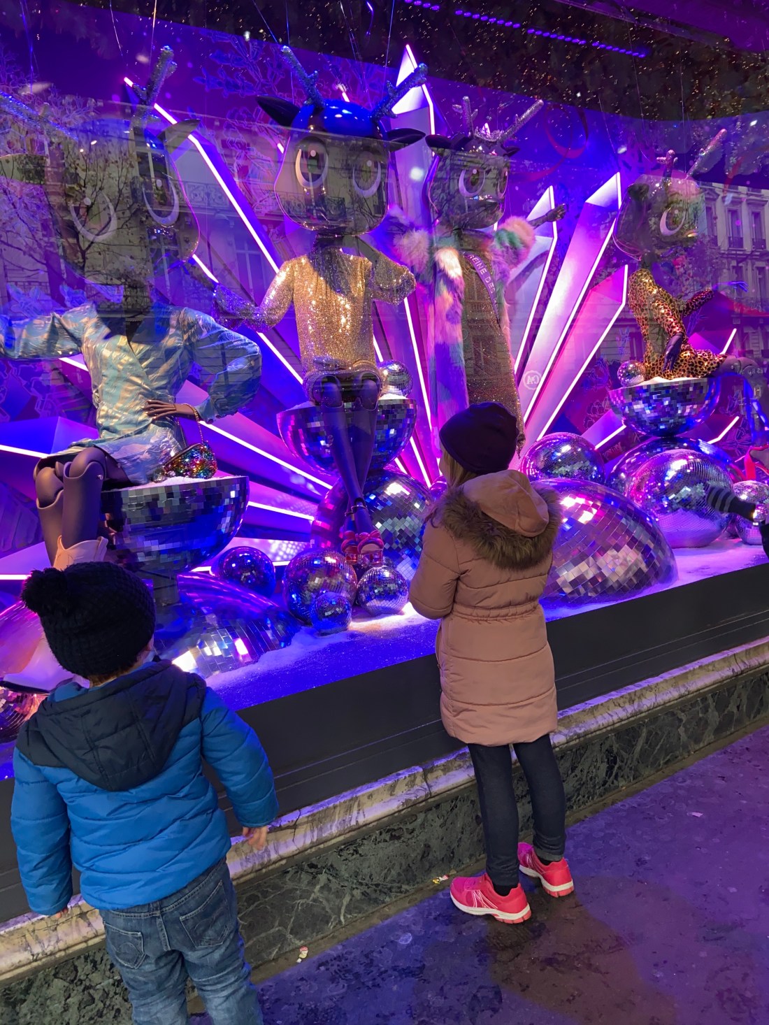 Vi inledde sedan dagen med att åka in till Boulevard Haussmann med de stora varuhusen Printemps och Lafayette för att titta i deras skyltfönster. Vilken cirkus alltså. Jättefina skyltningar, och framför nästan varje fönster finns en liten ramp uppbyggd så att barnen kan komma högre och närmare och titta ordentligt. Totalt pratar vi om en sträcka på kanske 200 m och 20 olika fönster att titta på. Det fick ta sin lilla tid😊