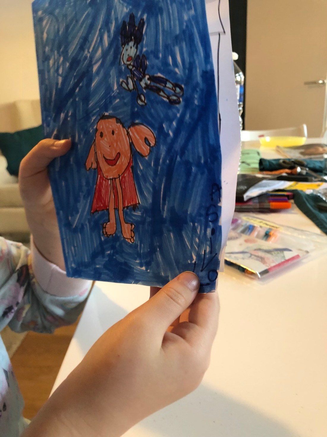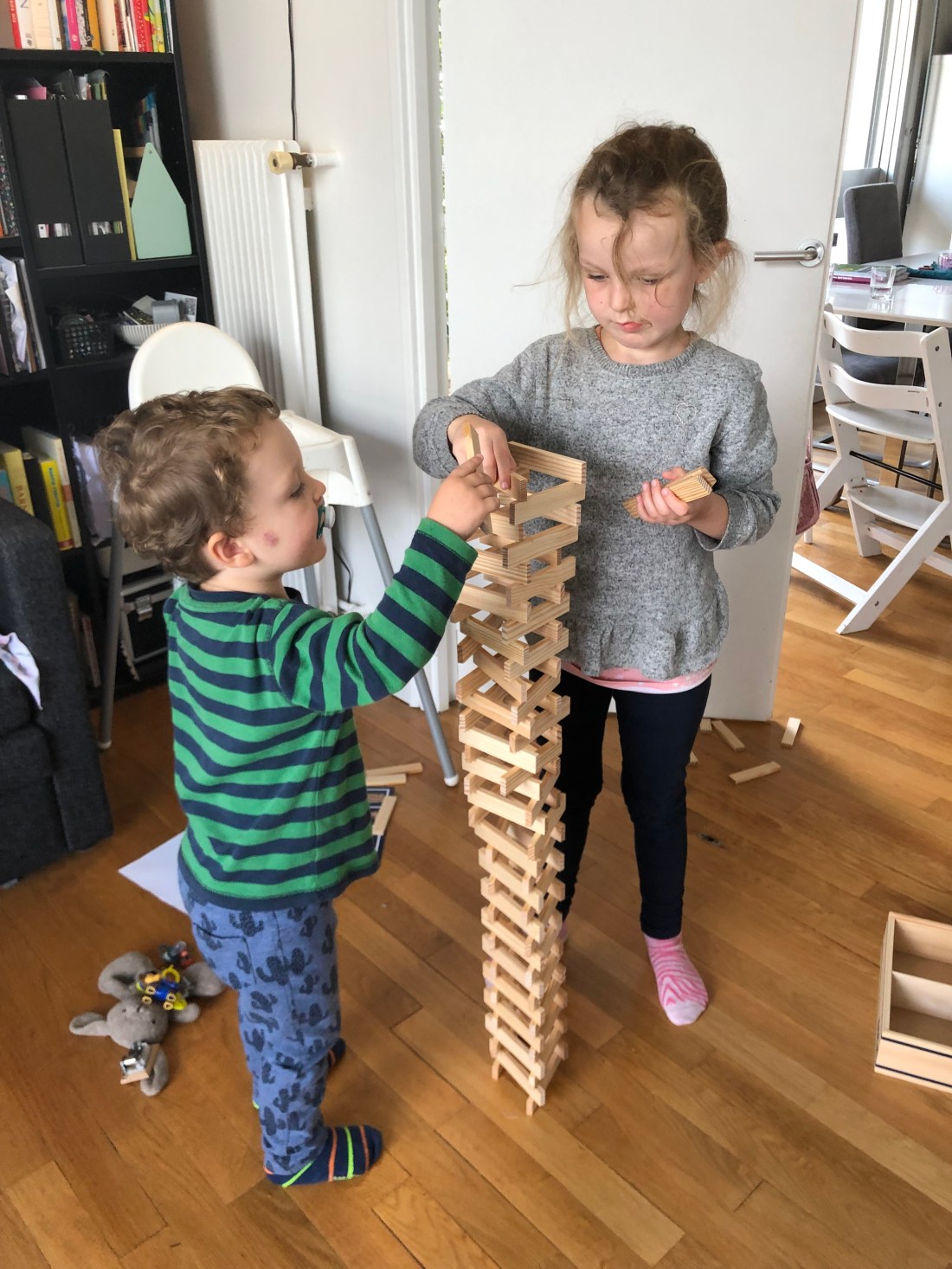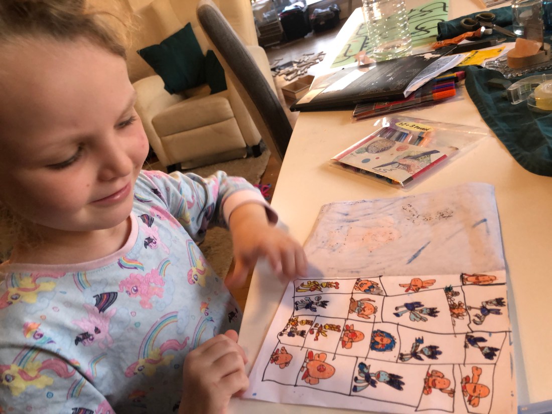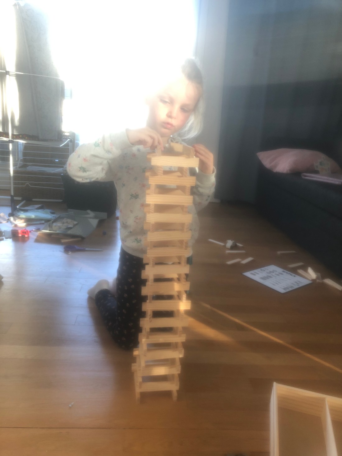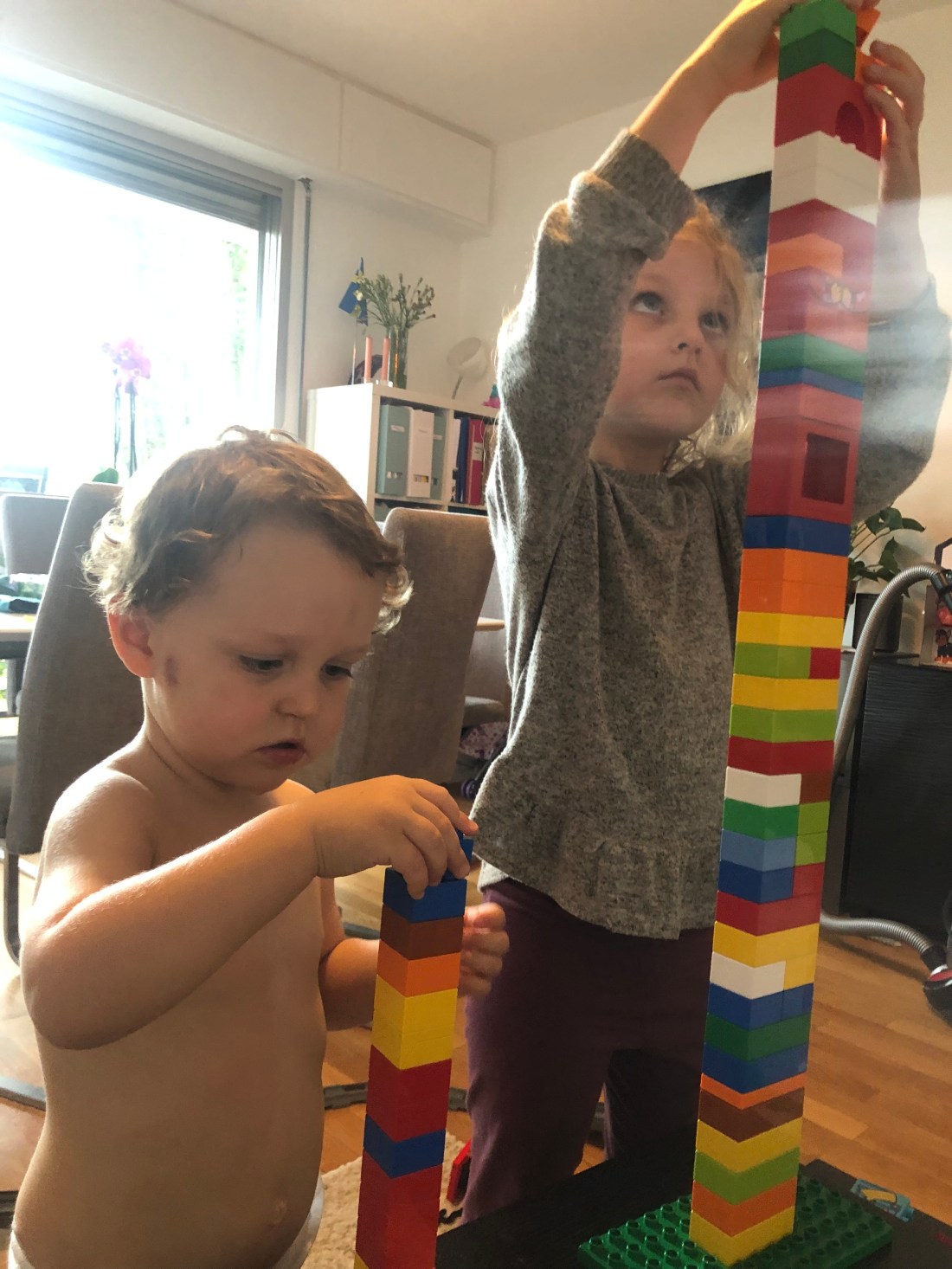 Bland annat byggde vi höga Kapla-torn och Lollo ritade otaliga teckningar. Den här 👆🏻 var väldigt medvetet med svenska flaggan/svenska färgerna, så man kan ana en viss hemlängtan nu.