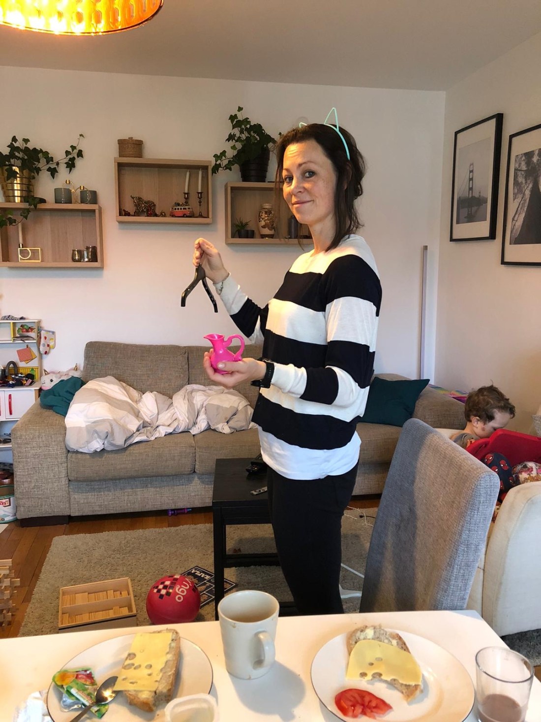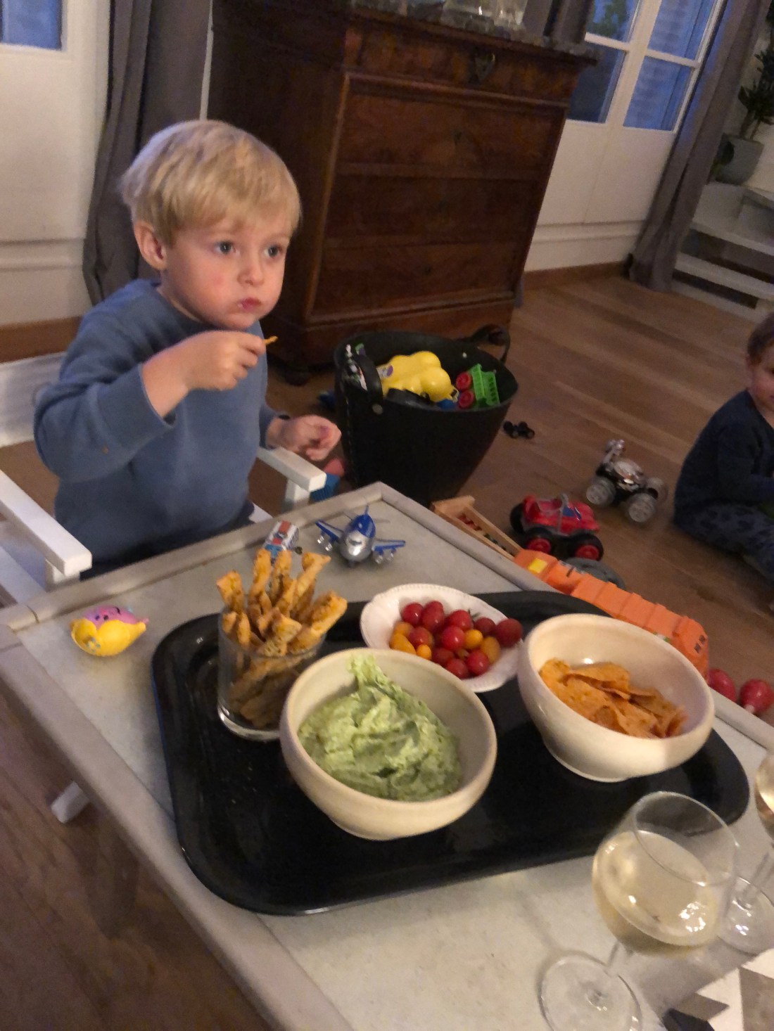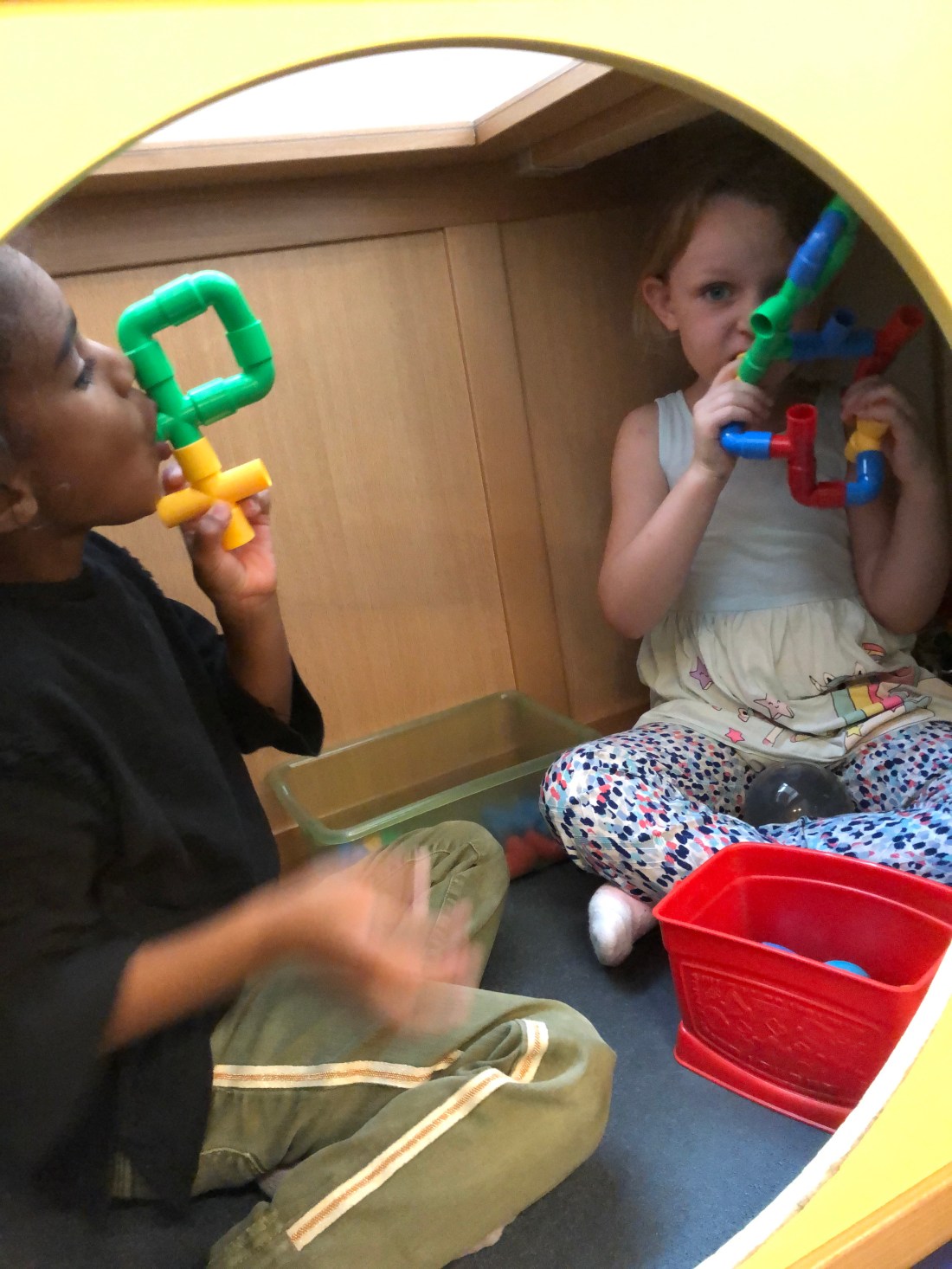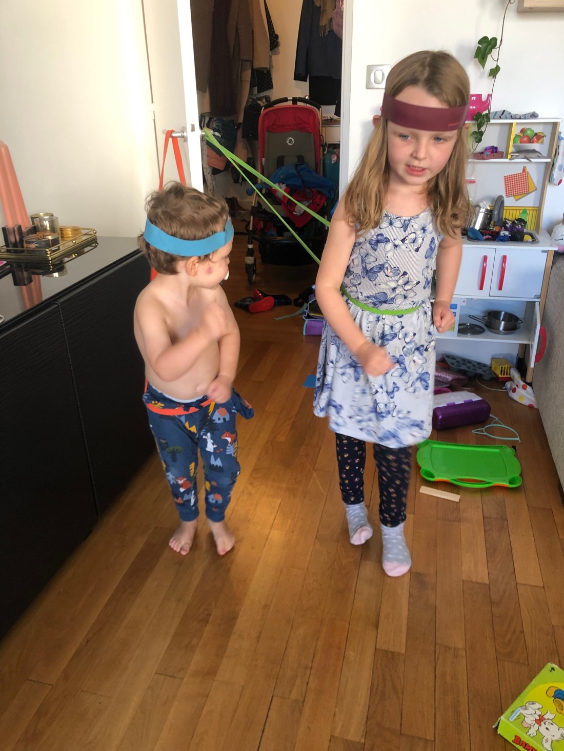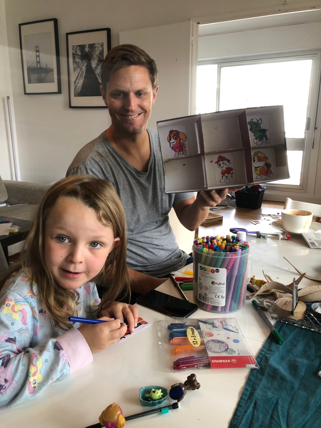 Bland annat byggde vi höga Kapla-torn och Lollo ritade otaliga teckningar. Den här 👆🏻 var väldigt medvetet med svenska flaggan/svenska färgerna, så man kan ana en viss hemlängtan nu.