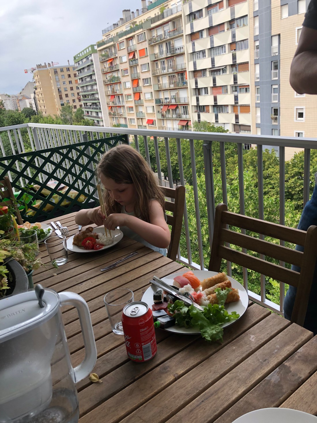 Vädret fortsätter vara sådär rätt nice utan att bli för varmt. Det tillåter ju i stort sett alla aktiviteter vilket är väldigt roligt:) I fredags kväll tog vi med barnen till en restaurang inne i Parc de St Cloud. Detta är ett enormt stort naturområde/park, som börjar precis på andra sidan Seine från oss sett, och sträcker sig hela vägen till Versailles. Här kan man springa, cykla, besöka lekplatser, bara allmänt vara i naturen och så finns det också ett antal restauranger man kan köra till med bil. På just detta ställe har vi varit och och ätit glass en gång tidigare. Här erbjuds endast crepes och sallad, men det passar ju utmärkt för en mysig fredagsmiddag.