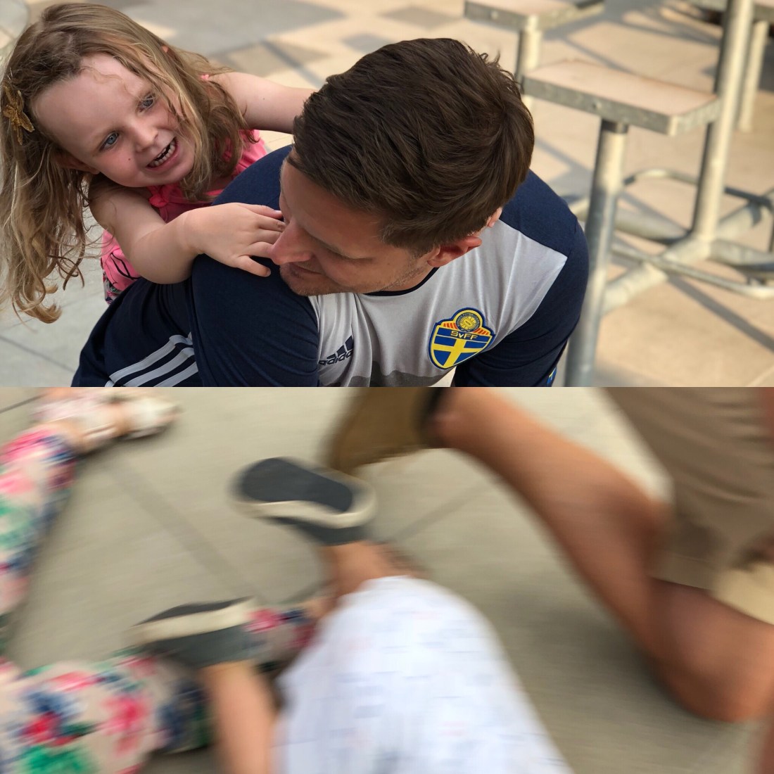 Någon kom på den briljanta idén att tjejerna skulle gå runt och fotografera. Det blev över 200 foton på några minuter med min telefon😅 kul att se världen från Lollos perspektiv, t ex var det här spåret av vatten högst intressant och motiv för ca 50% av bilderna.