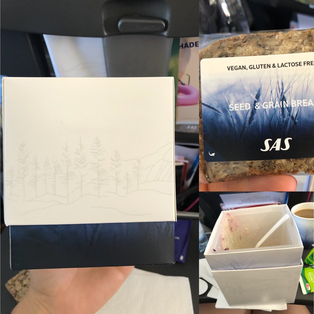 SAS hem idag och känner mig lite impad av branding de skapar. Åt en sallad som kom i en jättefin låda, ser typ ut som när man får en ny iPhone. God dessutom. Och färg och from andas liksom skandinaviskt enkelt. Till salladen fick man en skiva bröd som var jättegott och liksom också bara råkade vara veganskt, gluten- och laktosfritt. Kändes väldigt modernt👌🏻