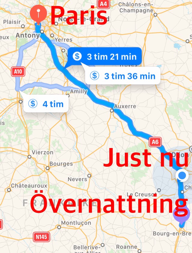 En del sömn på båda de där👆🏻 Det underlättar ju. Totalt är det ca 9h körtid från Como till Paris. Men med en del köer och omledningar i Schweiz och såklart några längre stopp blev en riktig heldag på vägen, ca 13h.