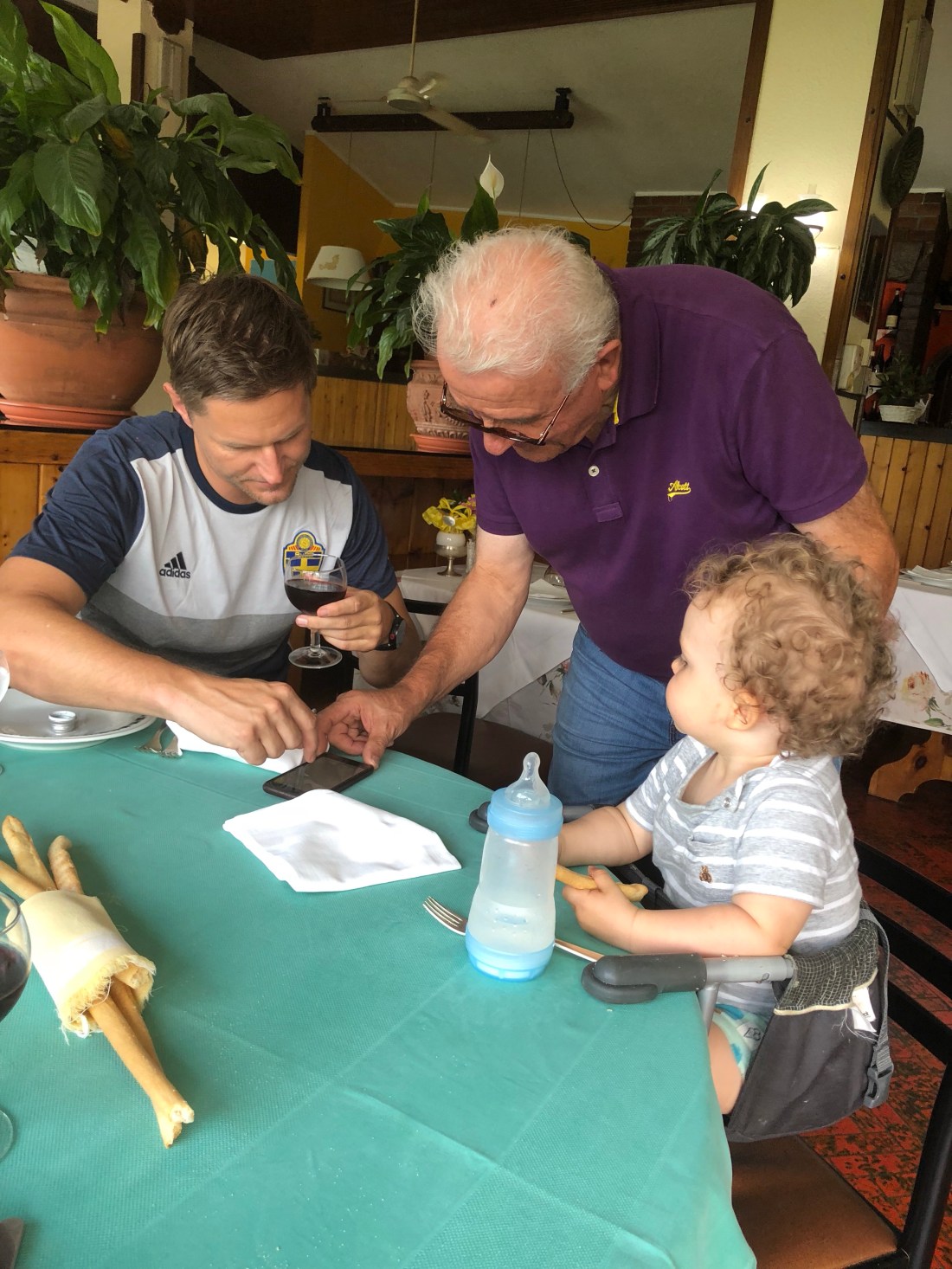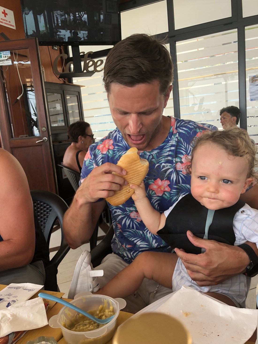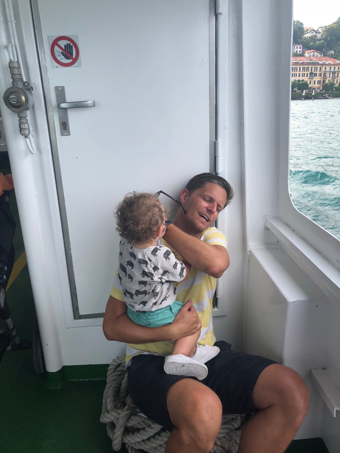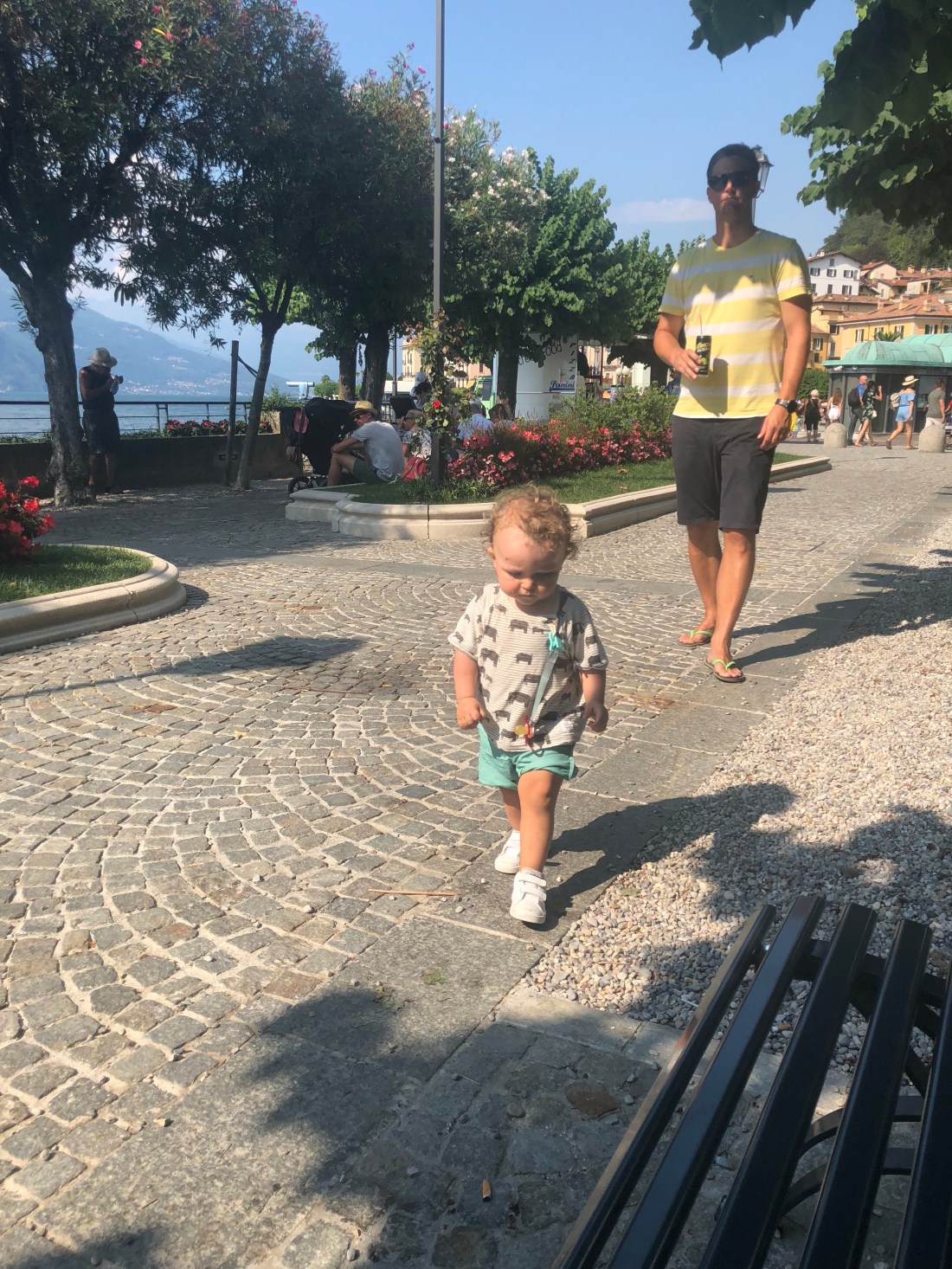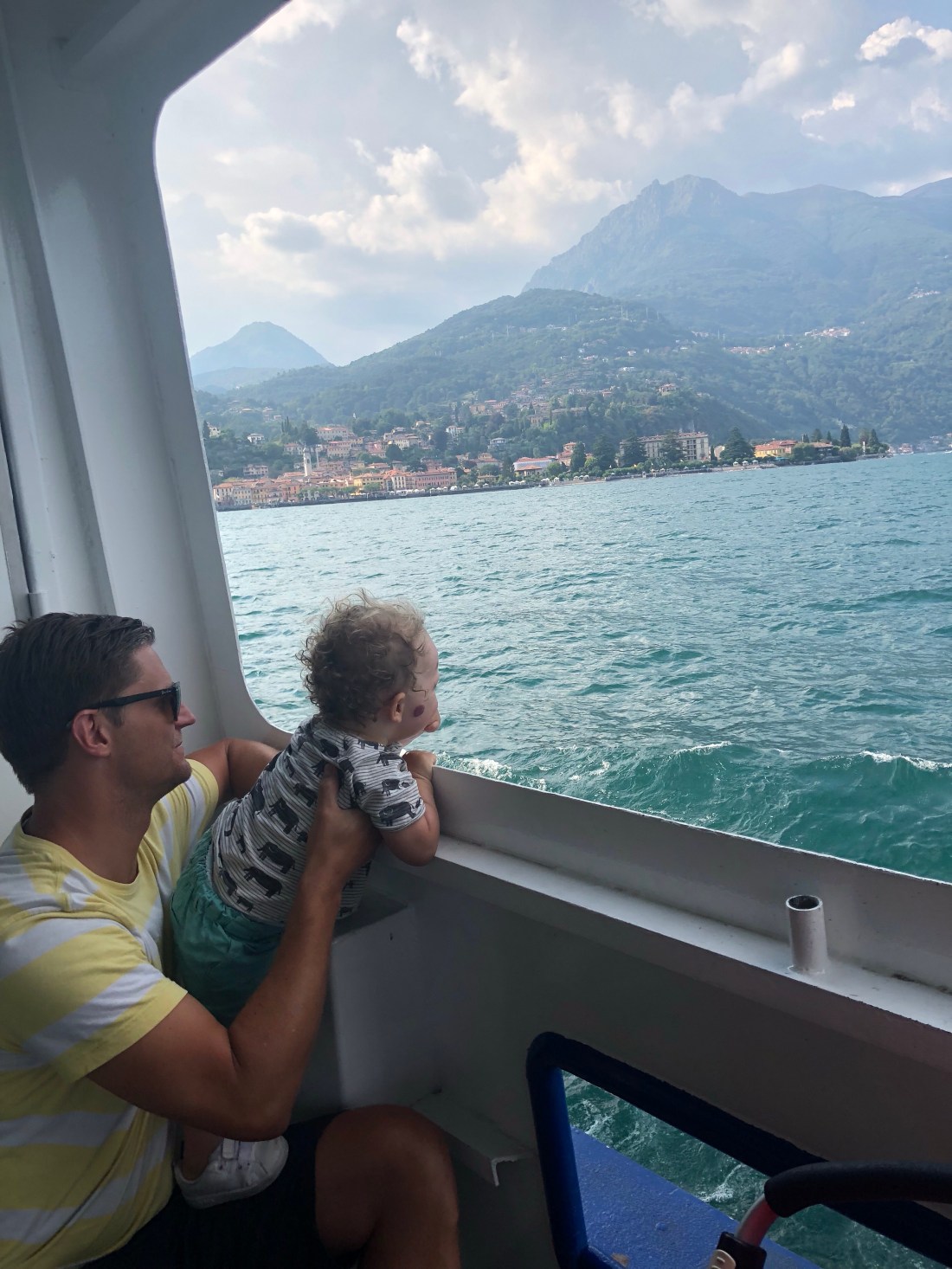 Alla bjuder på mysiga små gränder, butiker, restauranger och bad. Varenna spenderade vi mest tid i och det var nog klokt, inte fullt så mycket folk som i Belaggio. Verkligen besöksvärda ställen, och känns ju också speciellt att åka båt från ett ställe till ett annat. Men det är fortsatt otroligt varmt så det blir rätt tuffa dagar för barnen. Lollo sov t ex en timme i Sams vagn när han hade ett piggt eftermiddagspass. Men ingen orsak till oro, vi ser till att de äter och dricker mycket! Har dock förstått att man i Italien inte ger små barn kalla saker. Har flera gånger under resan fått en förmaning om att vara försiktig med något kallt som har serverats.