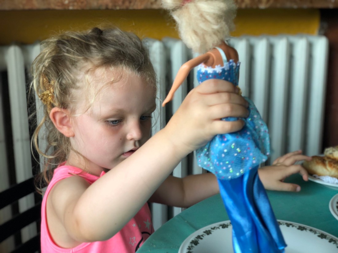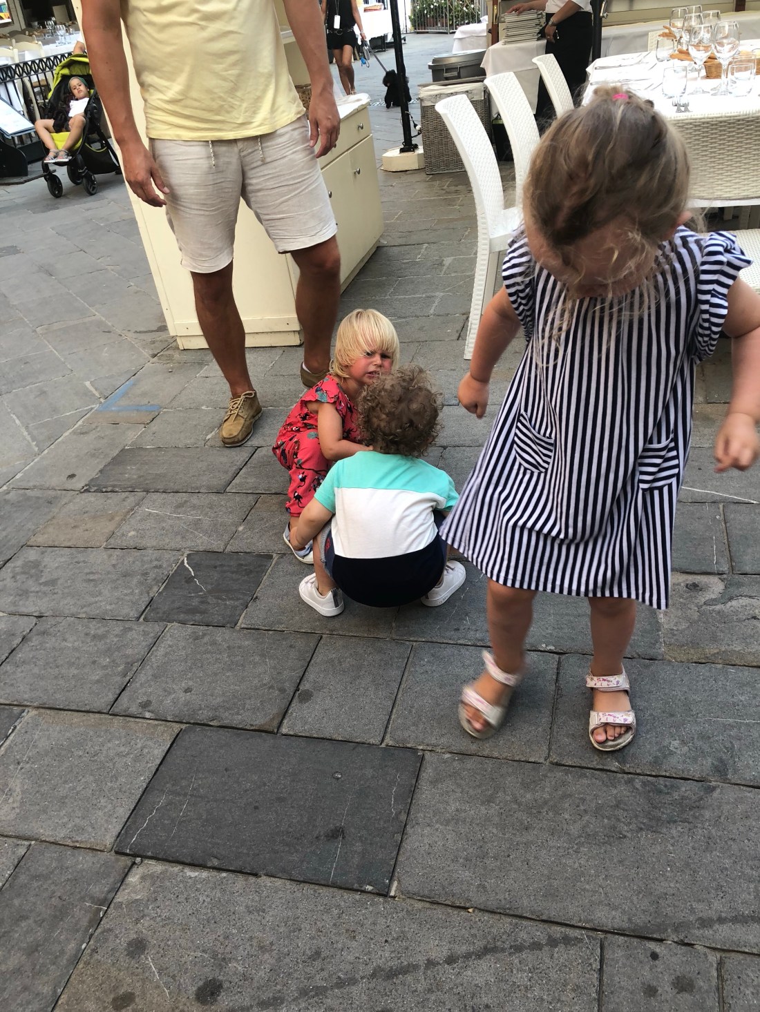 Barnen stökade rundor och hade skoj, rätt tacksamt att sitta utomhus.