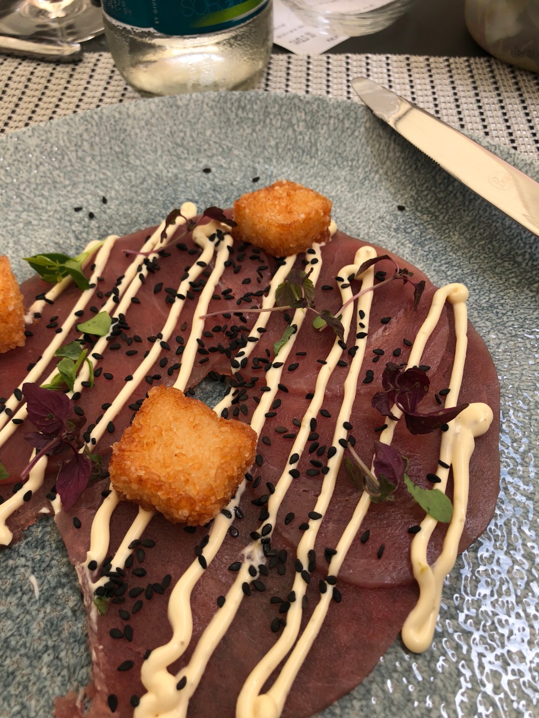 Byn Cervo har ett stort gammalt kastell som ligger på en höjd och är omgärdat av pyttesmå gränder. Här snirklade vi oss upp och fram för att äta middag igår. Ett litet ställe i en av de där gränderna hittade vi. Helt perfekt för oss, liksom ute fast inne. Och pasta och caprese på menyn👌🏻